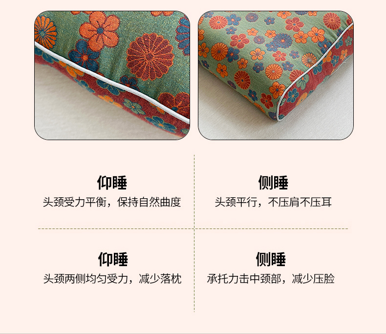 (总)梦莱家纺 2025新款棉麻荞麦枕枕头枕芯,清风-蓝色,丛林-咖色,花影-红色,玫瑰-粉色,玫瑰-黄色,玫瑰-灰色,玫瑰-蓝色