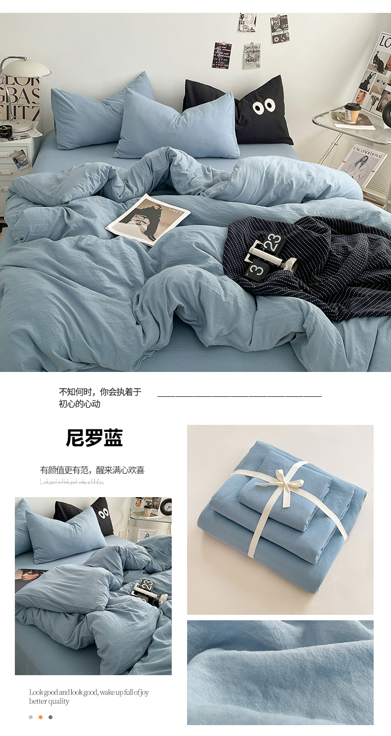 当前位置: 91家纺网 > 商品网购 > 床品套件 > 四件套 > 普通磨毛四件套 > 优尚佳生活馆 2025新款ins风超柔褶皱亲肤磨毛水洗棉四件套纯色系列(风格一) 尼罗蓝