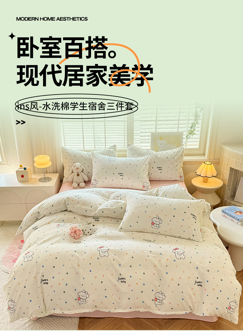商品名称:(总)多品家纺 2025新款ins风水洗棉学生宿舍三件套