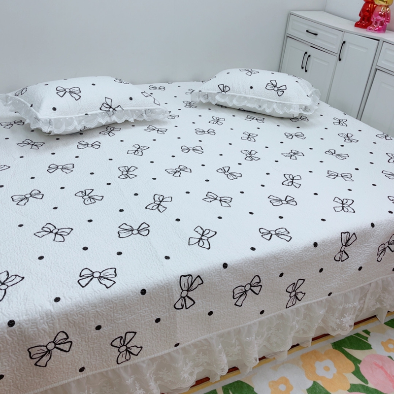 • 91家纺网 家纺一手货源 找家纺 暖居 2025新款纯棉大蕾丝榻榻米农村大炕盖支持定制 蝴蝶结白仙女款