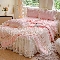 商品名称:漫布云2025新款A类甄选PE凉感丝花边床裙款冰豆豆凉席床盖三件套春夏韩版公主风水洗棉蕾丝夏被 梦幻—樱花粉