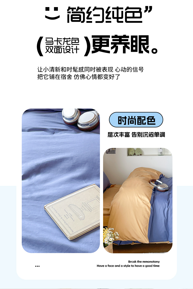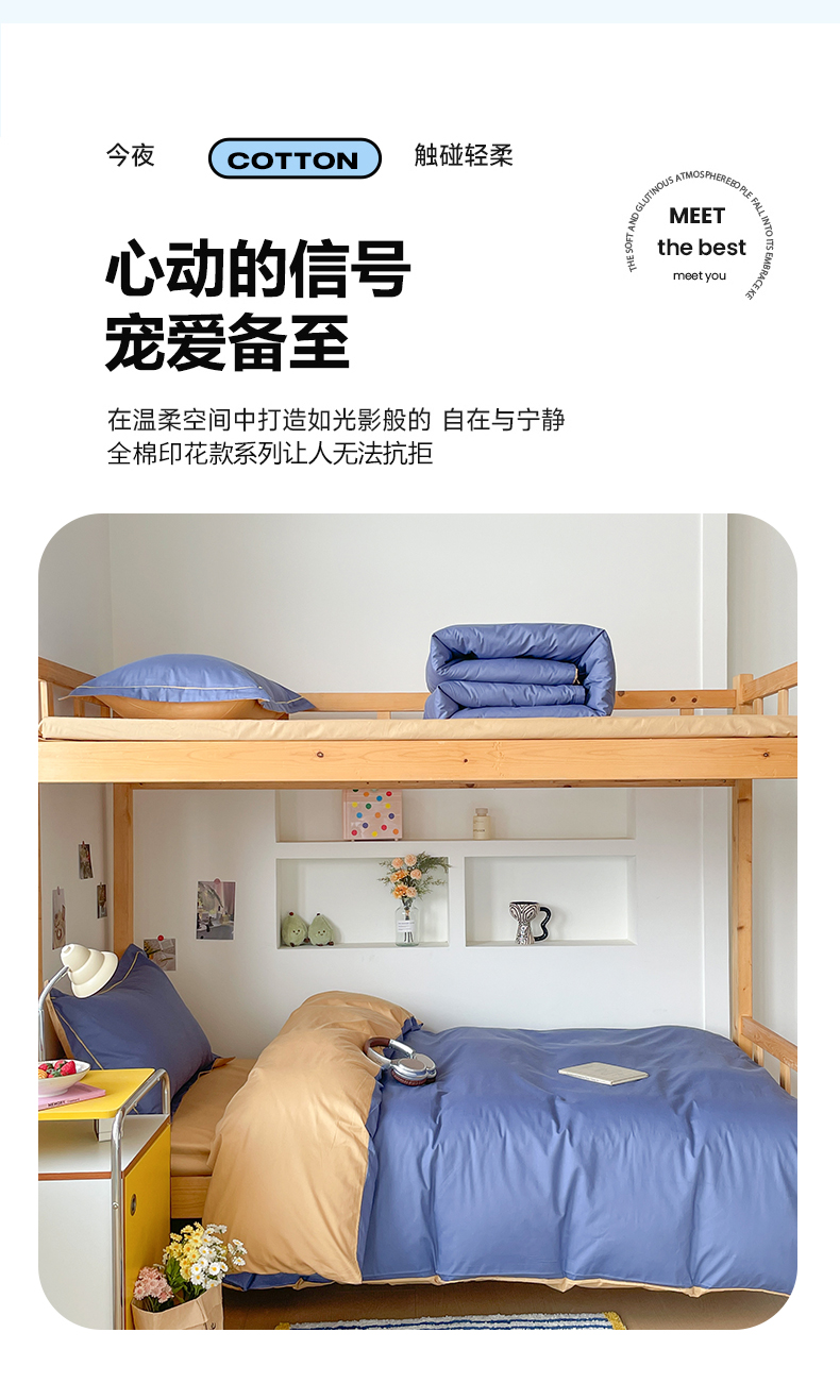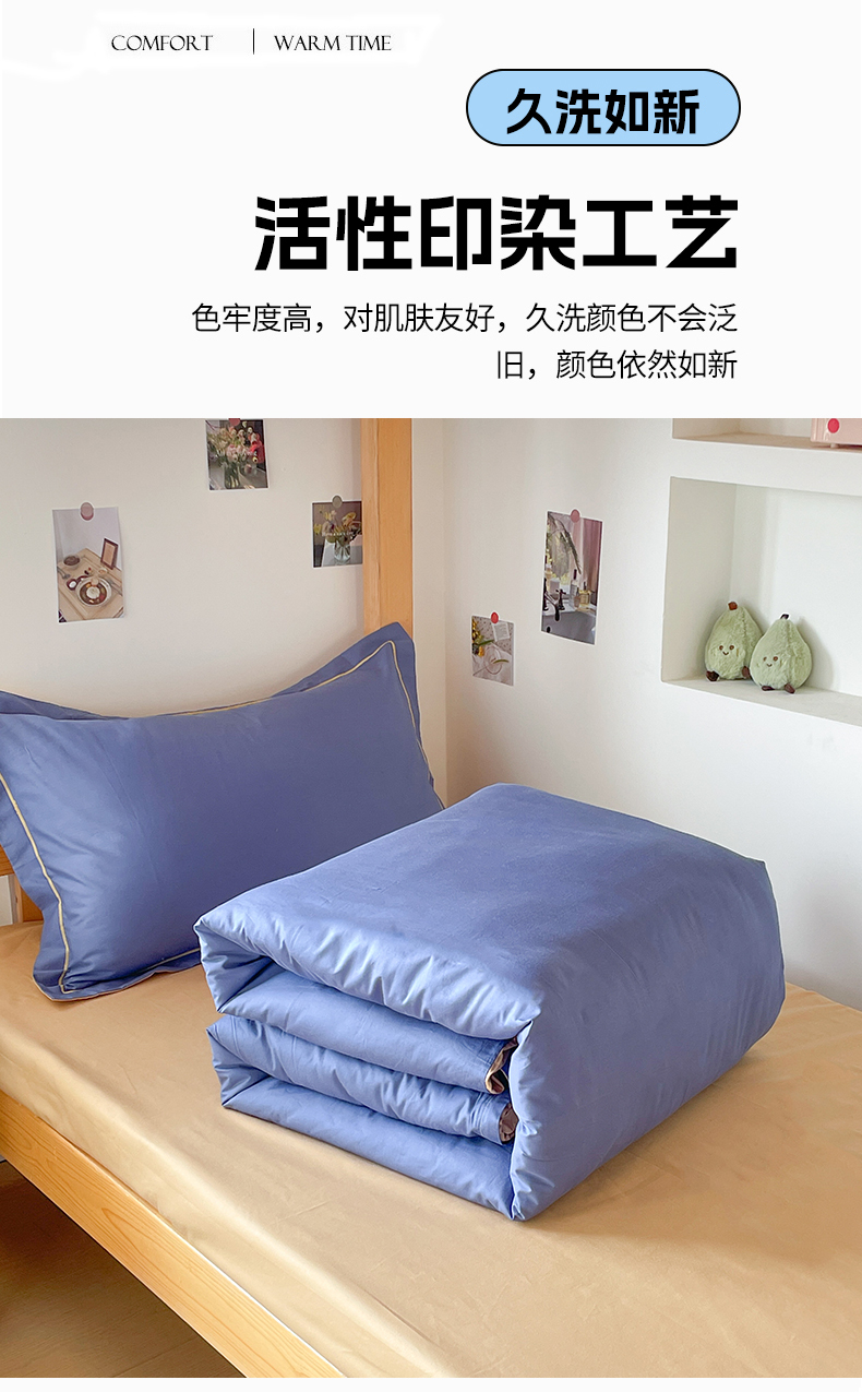 商品名称:恩泽家纺 2025新款全棉双拼学生宿舍三件套 藏青+卡其