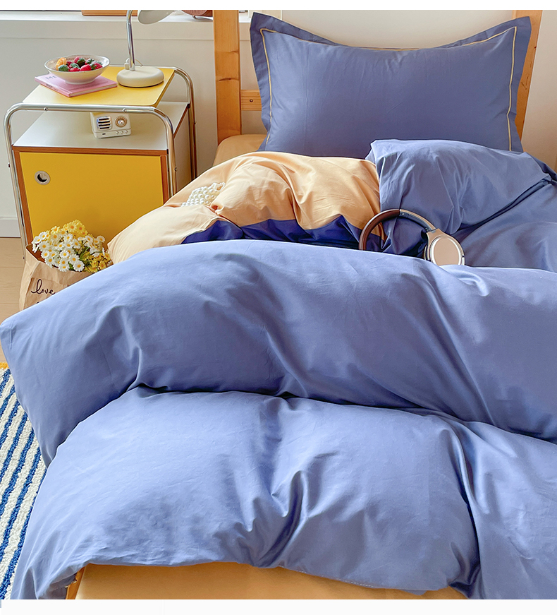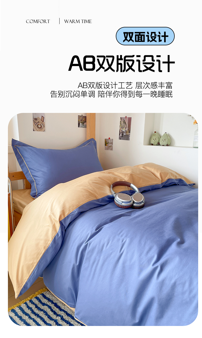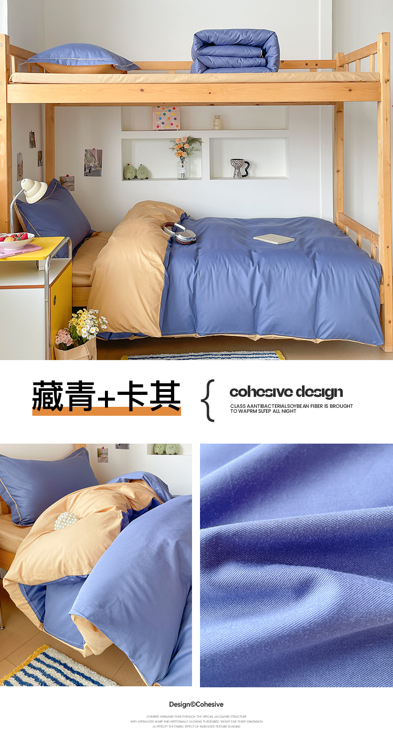 恩泽家纺 2025新款全棉双拼学生宿舍三件套 藏青+卡其