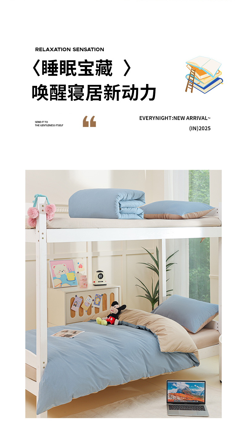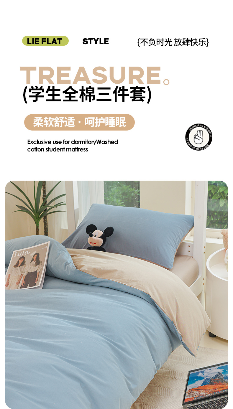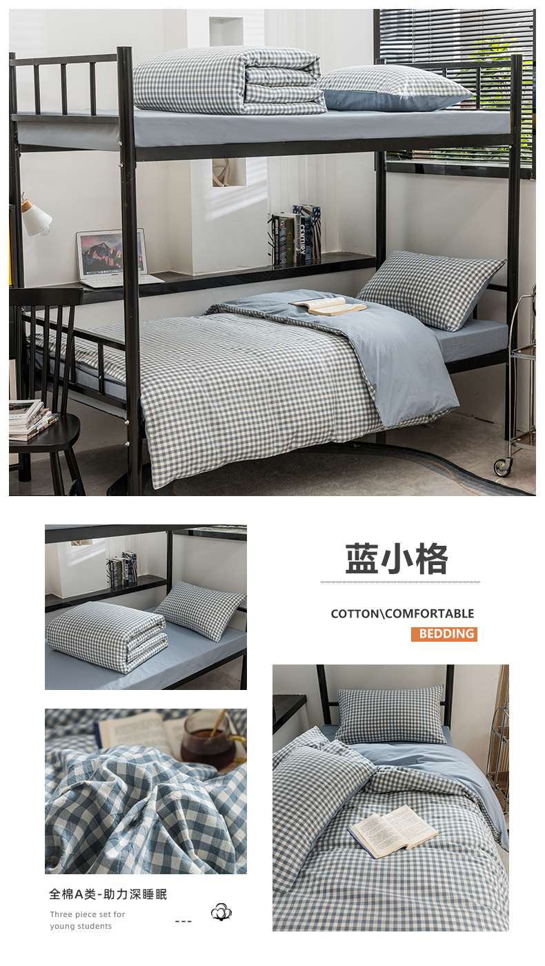 当前位置: 91家纺网 > 商品网购 > 床品套件 > 三件套 > 柠萌家居 2025新款无印良品风色织水洗棉A类学生宿舍三件套 浅蓝+卡其