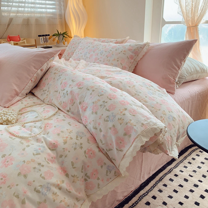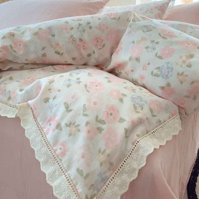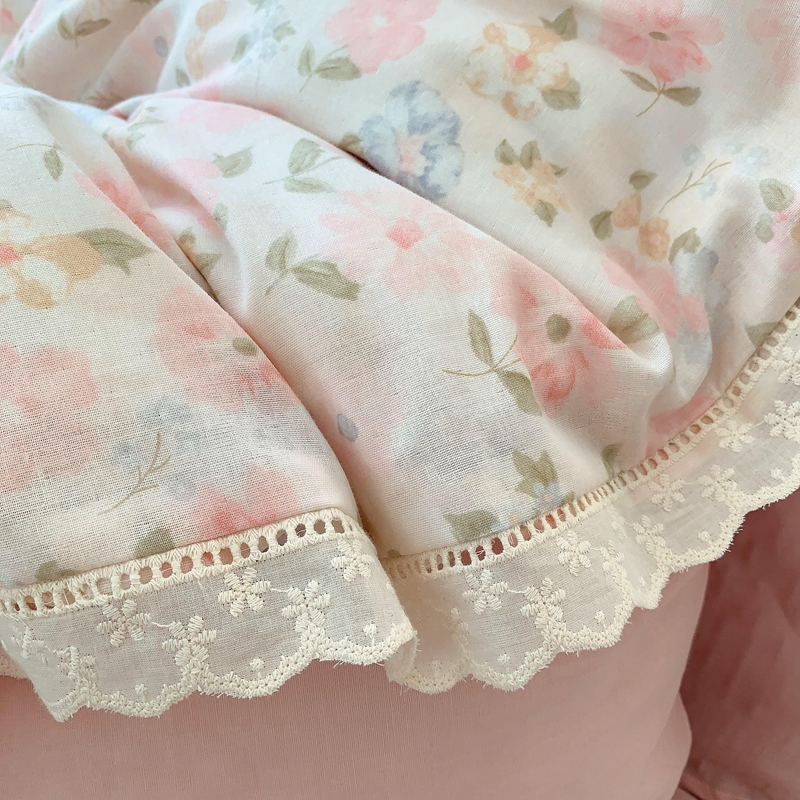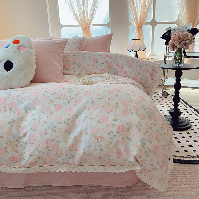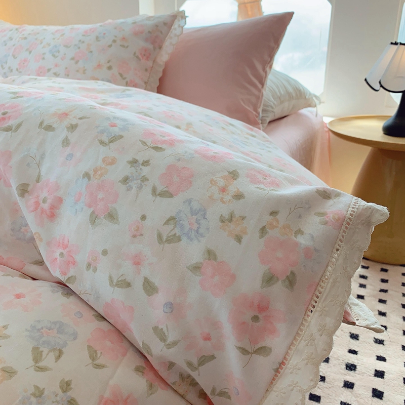 奈萝家纺 2025新款全棉双层纱花边款四件套 阳光花朵