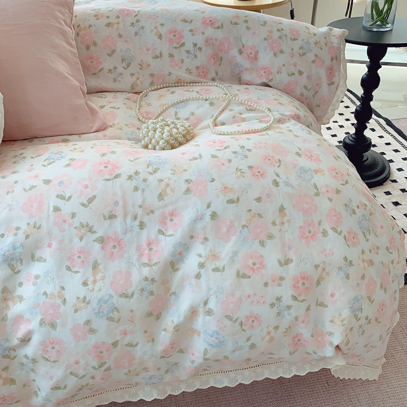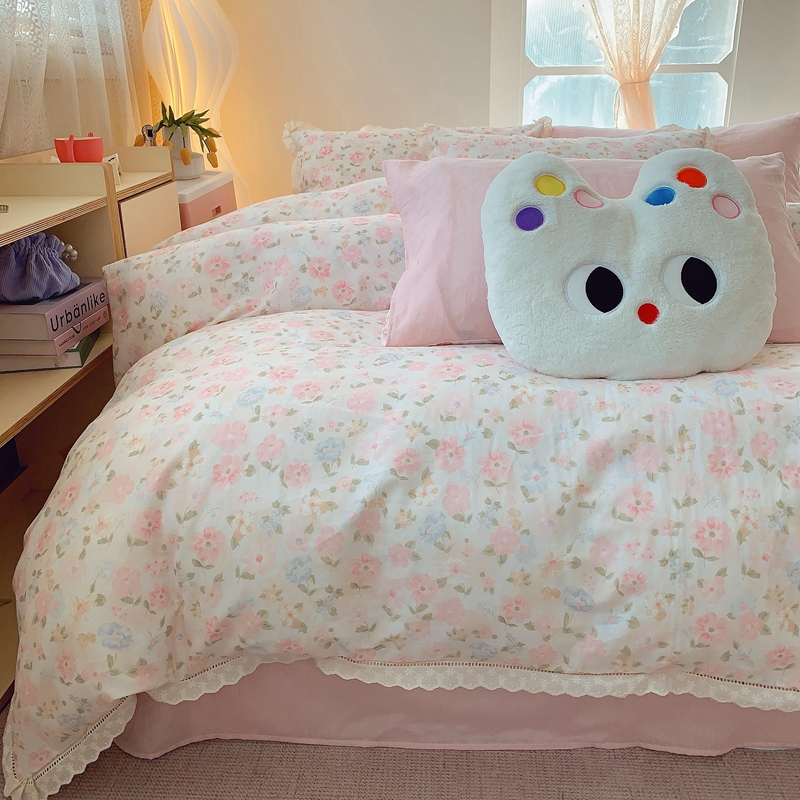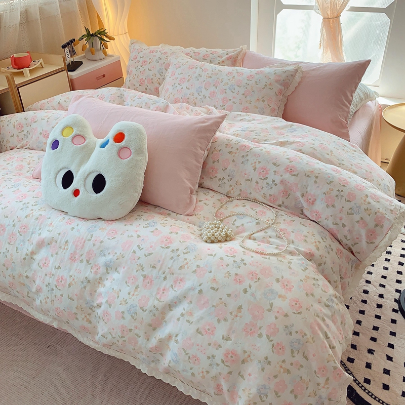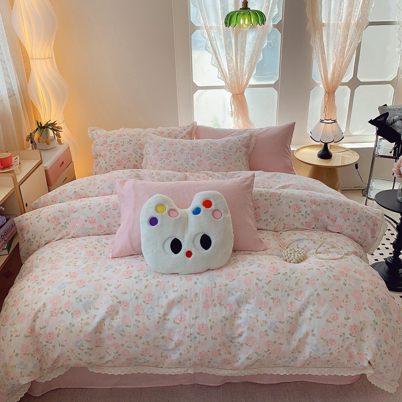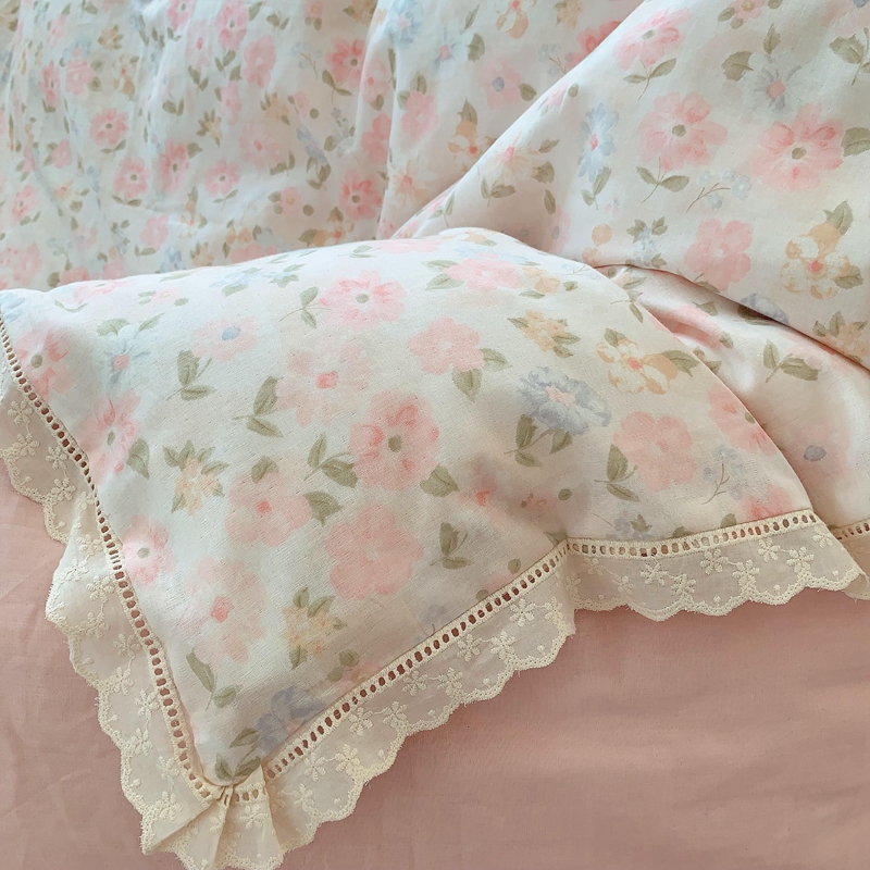 奈萝家纺 2025新款全棉双层纱花边款四件套 阳光花朵