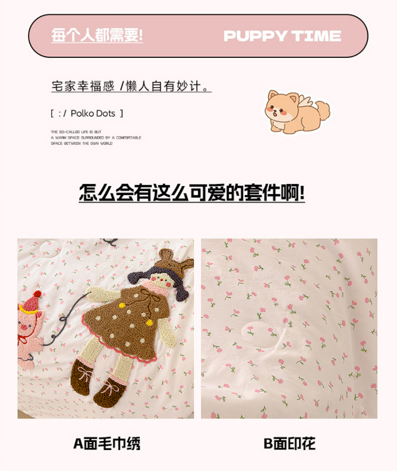 (总)赫梵茜 2025新款赫梵茜毛巾绣贝壳绣工艺牛奶绒床盖四件套正反可用,组合图仅供参考不可下单,小女孩,花朵宝贝,可爱布布,蘑菇小兔,足球恐龙