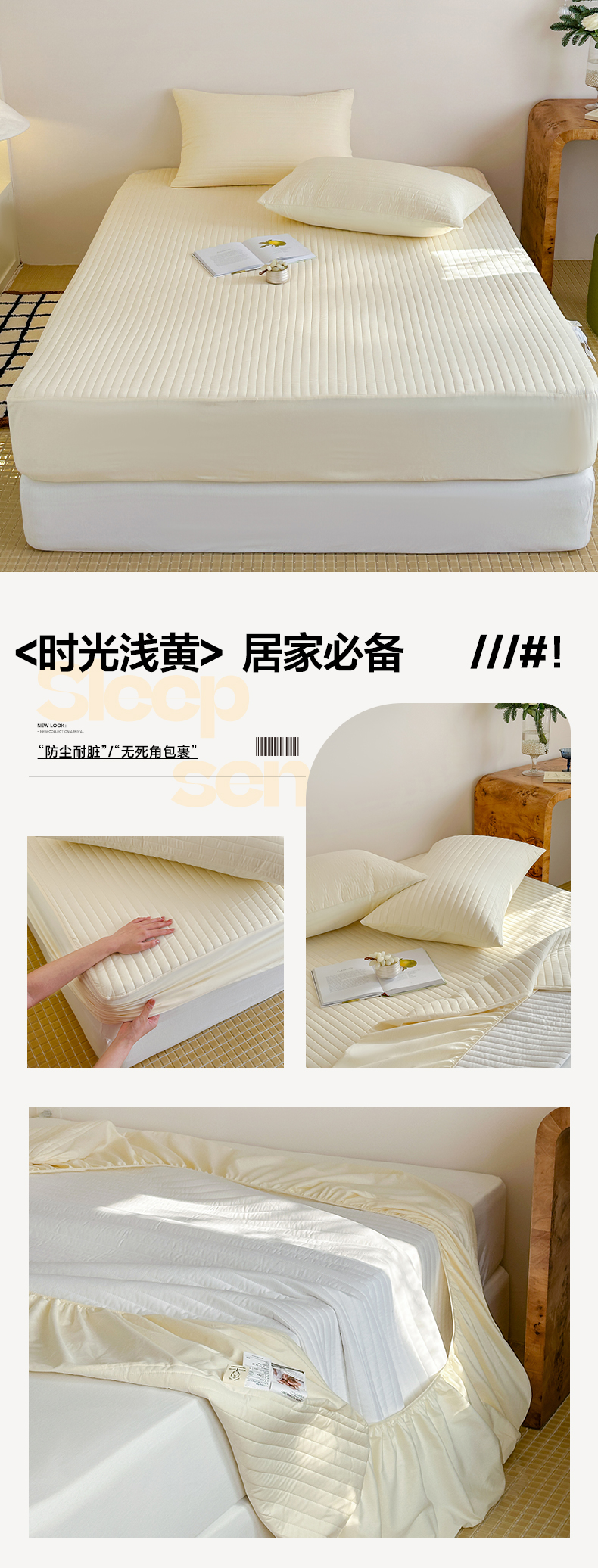 (总)三味舒屋 2026新款三防功能夹棉床笠床垫保护罩(严格控价:券后135/155/165),组合图仅供展示-不可下单,纯净白,净月白,净月灰,雅致灰
