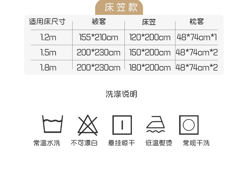 【床笠款】1.8四件套-被套200x230 | ¥120.00 |