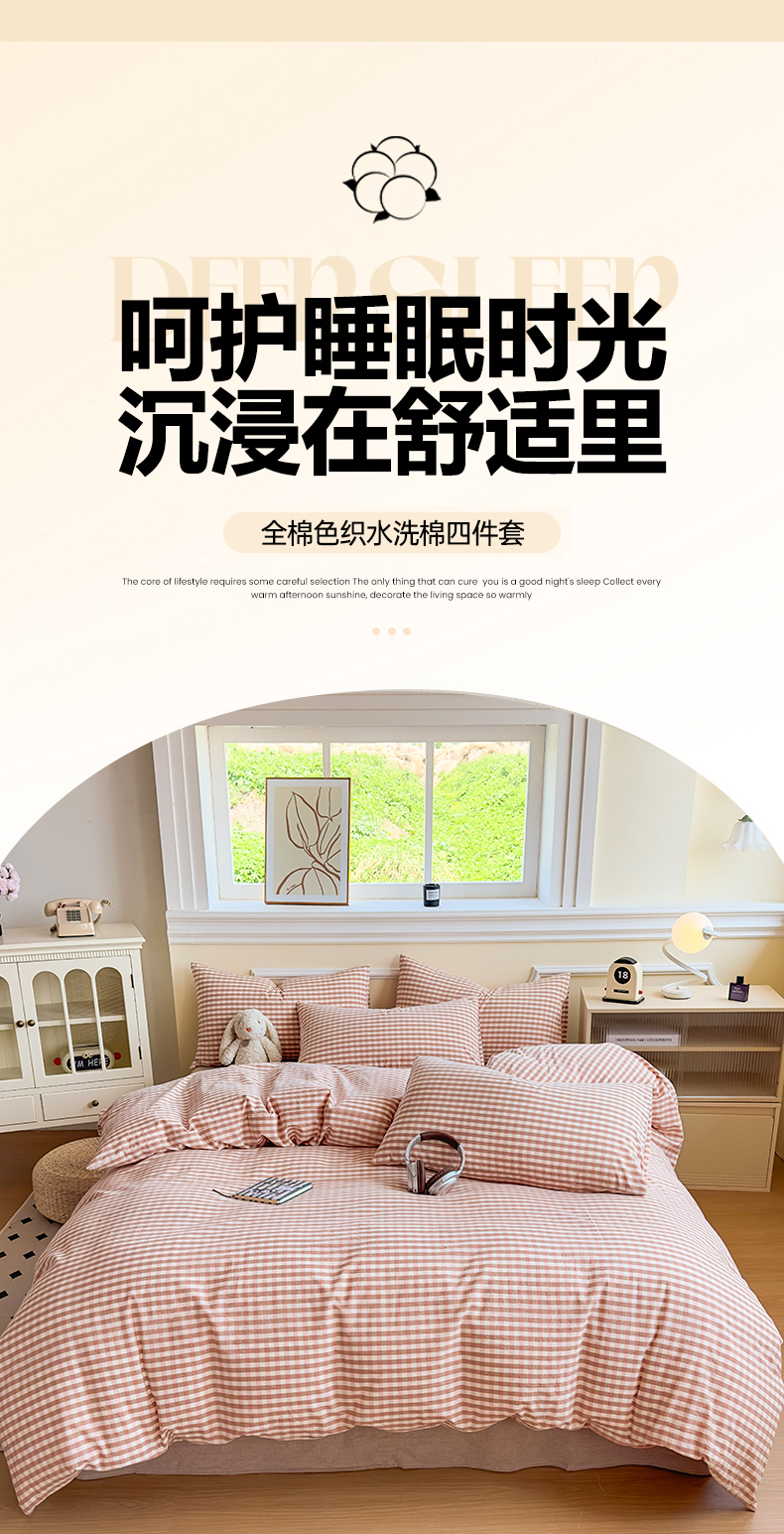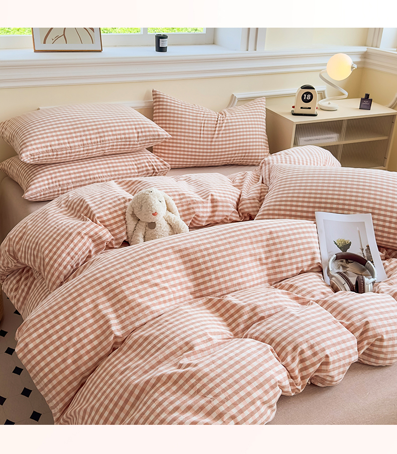 当前位置: 91家纺网 > 商品网购 > 床品套件 > 四件套 > 色织四件套 > 菡宝 【不断货 预留5公分缩水】a类母婴级纯棉全棉色织水洗棉四件套 支持定制定做尺寸 粉小格