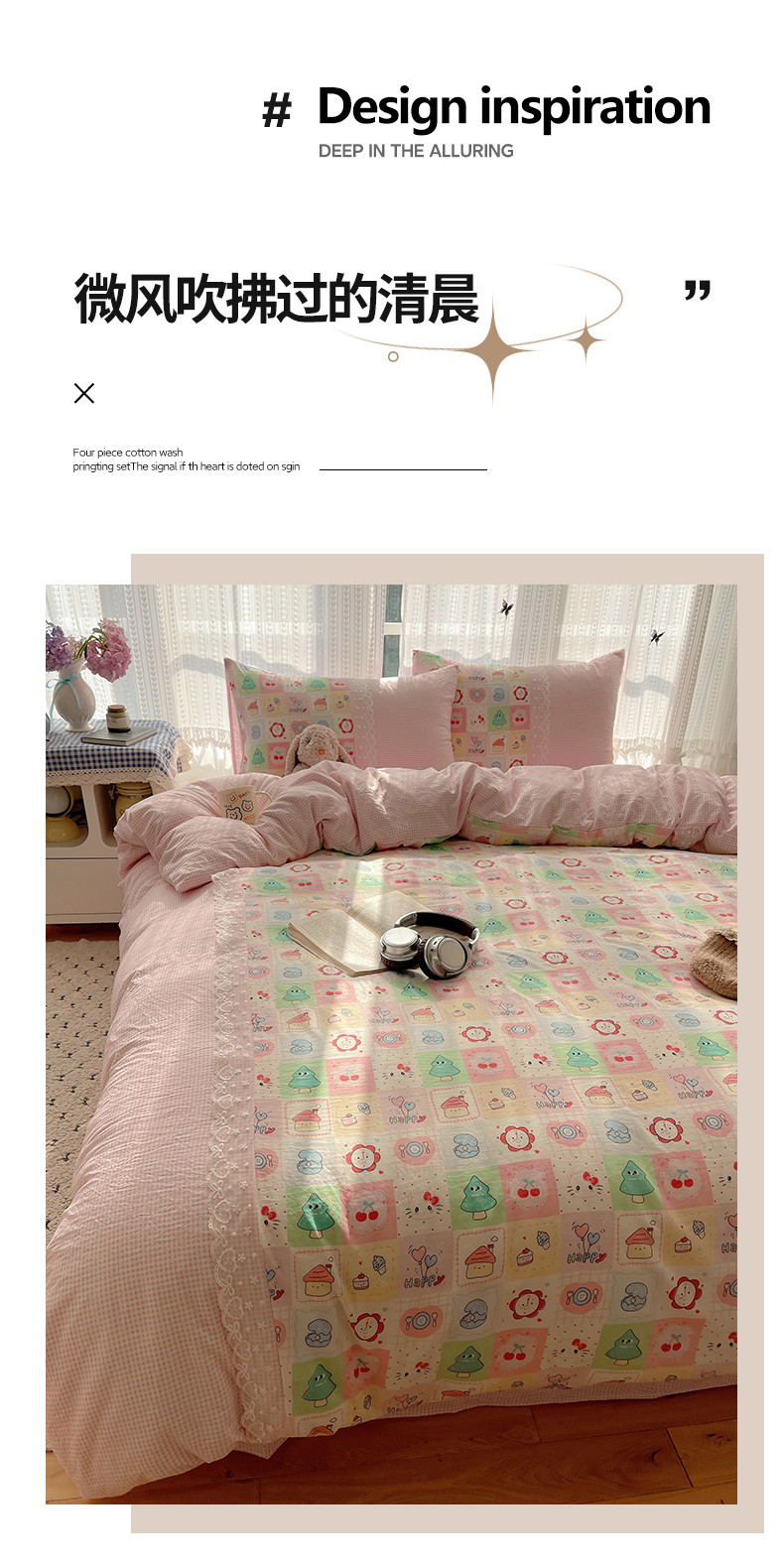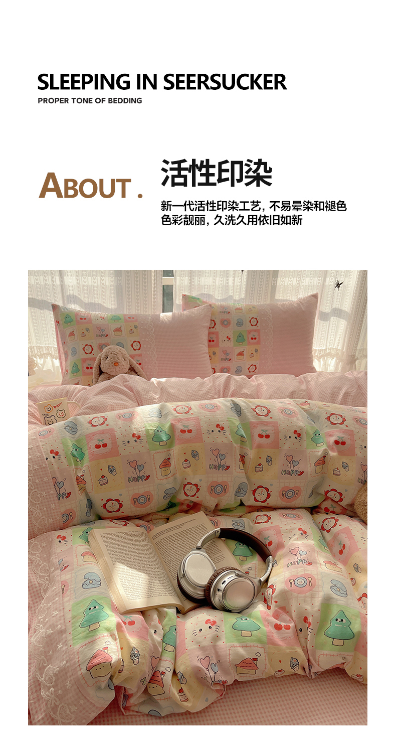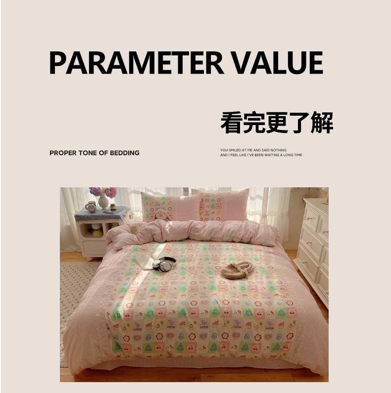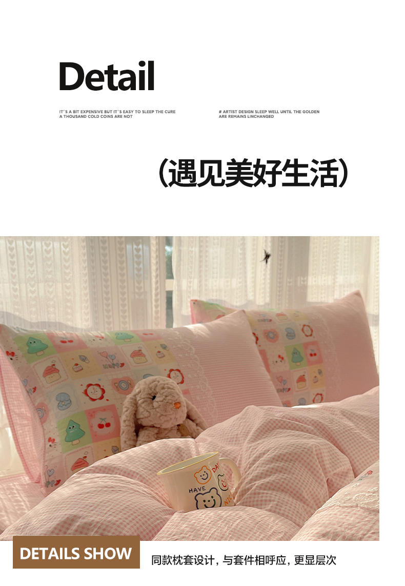 当前位置: 91家纺网 > 商品网购 > 床品套件 > 四件套 > 其它四件套 > 盼季家纺 2025新款柔软亲肤活性印花雪纺花边四件套 雪纺花边-方方乐园