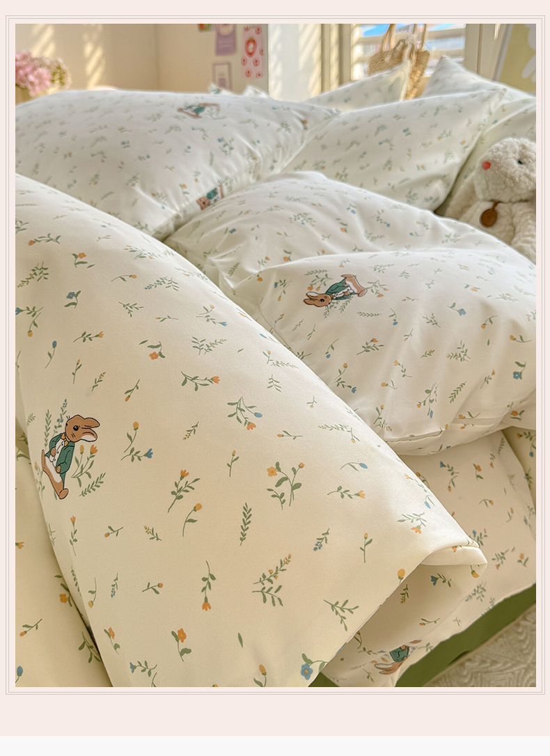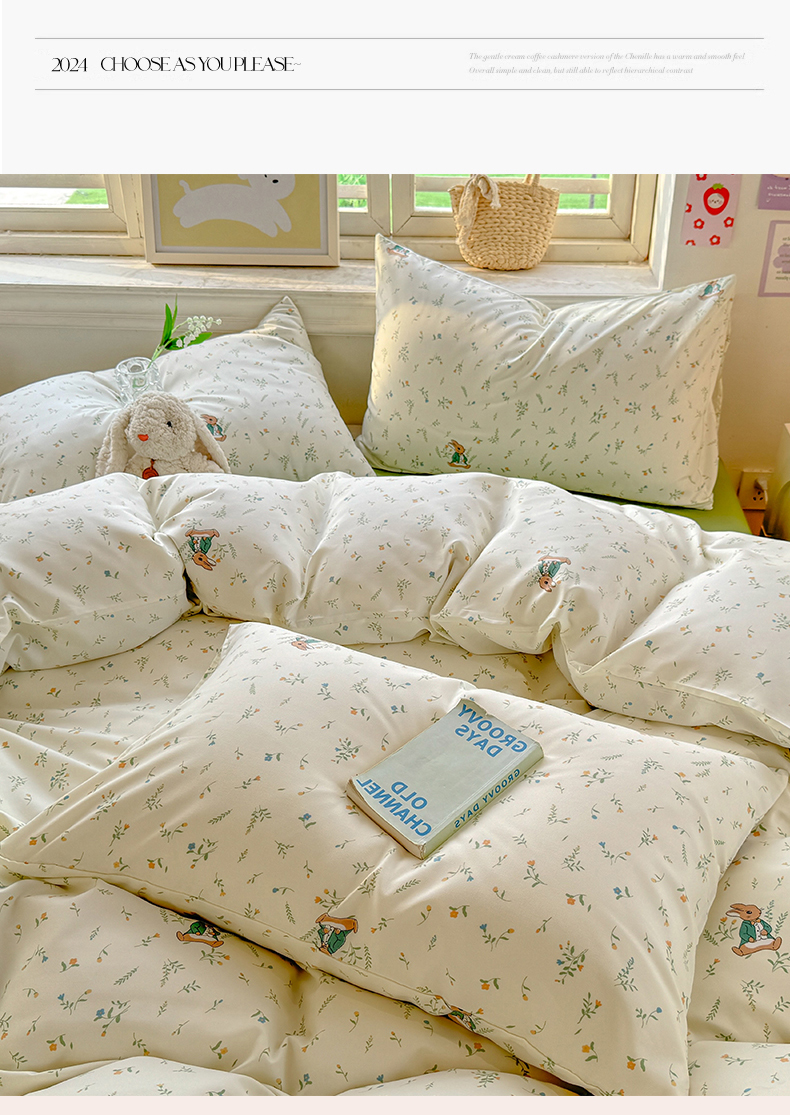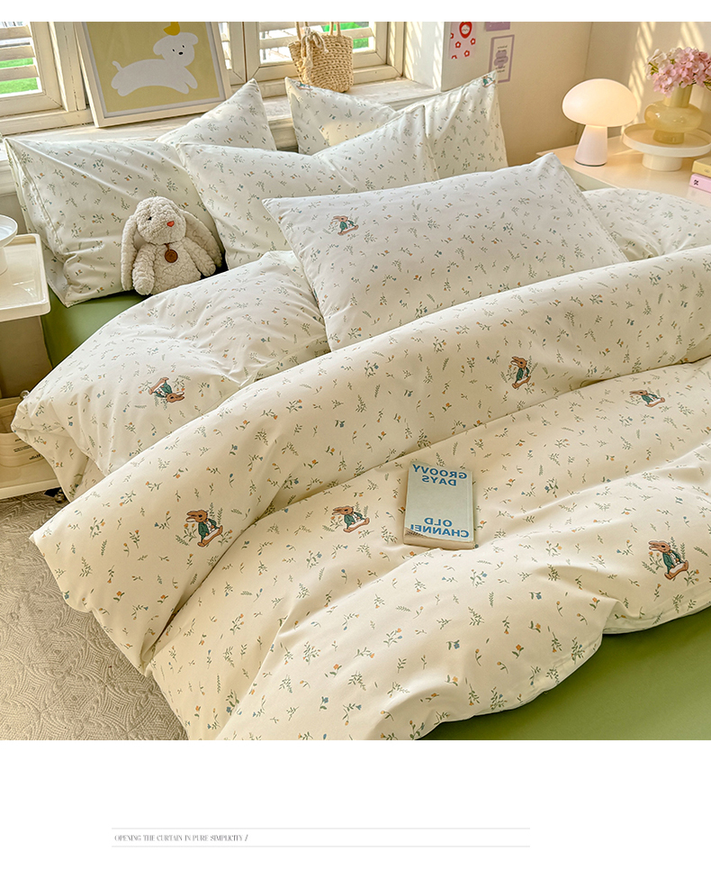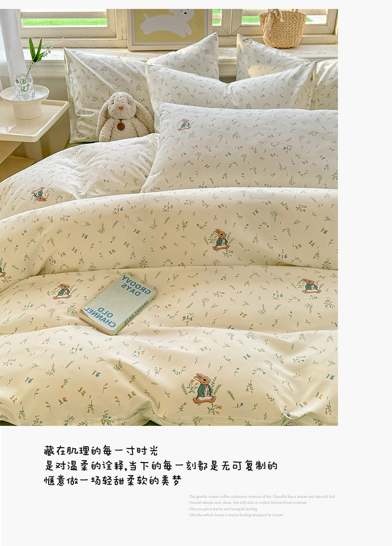 • 91家纺网 家纺一手货源 找家纺 多品家纺 2025新款超柔双层纱水洗棉单被套 叶雨兔