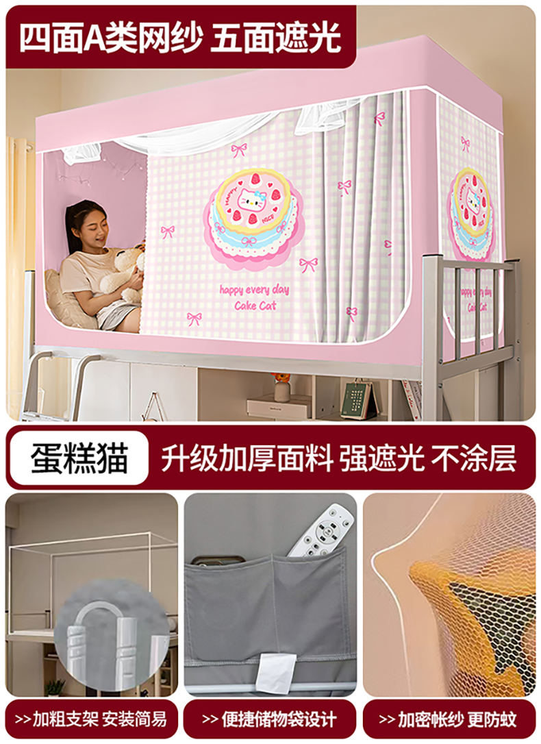 当前位置: 91家纺网 > 商品网购 > 床上用品 > 蚊帐 > 坐床式蚊帐 > 艾晶美家纺有限公司 2025新款印花坐床遮光布帘蚊帐国风卡通系列 蛋糕猫