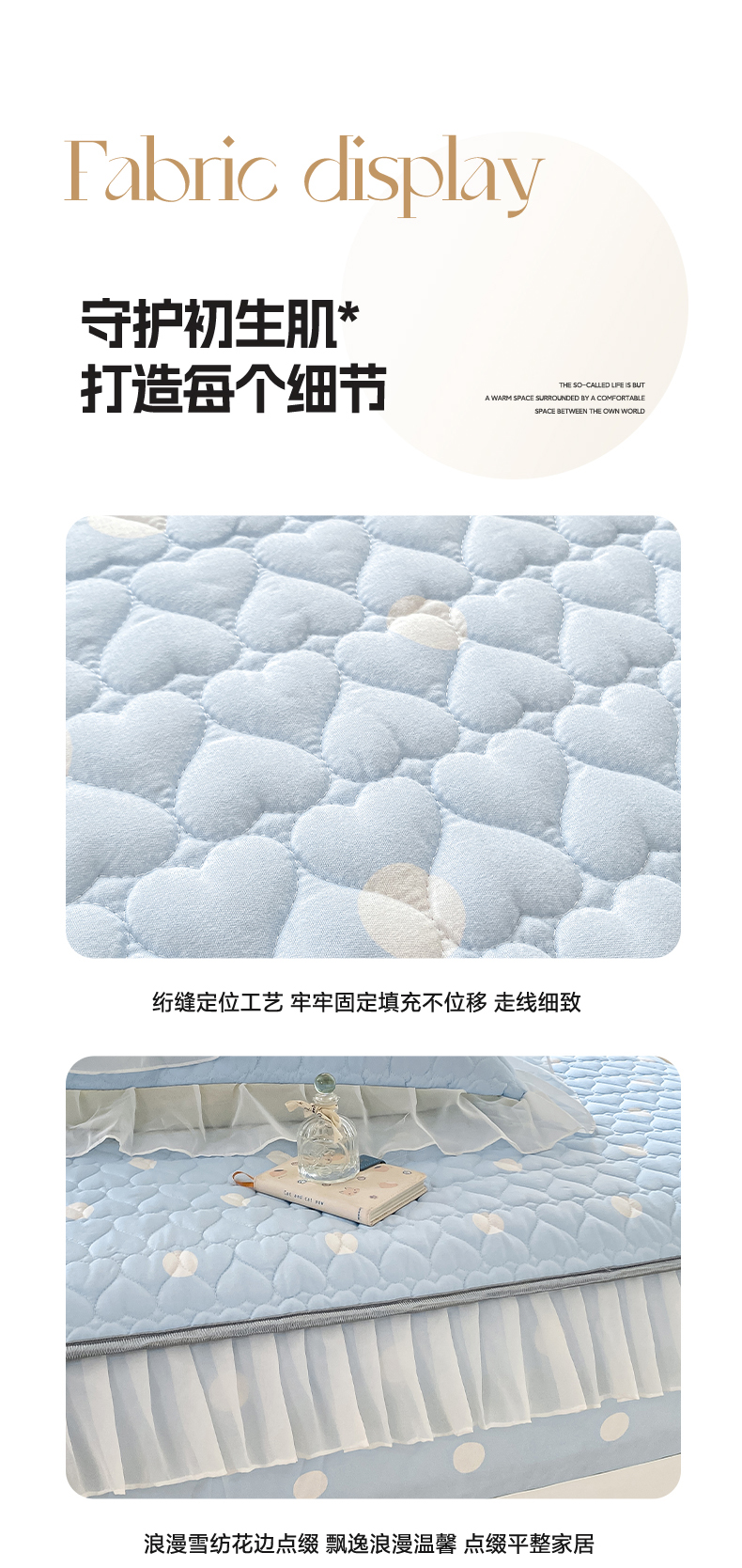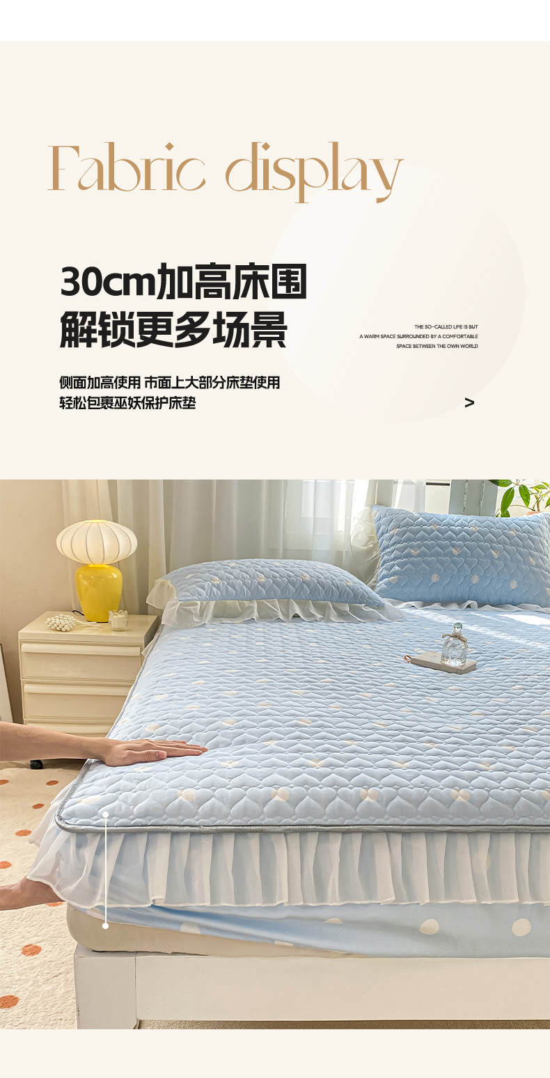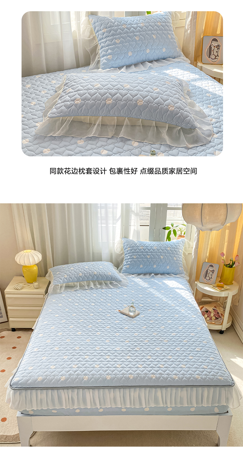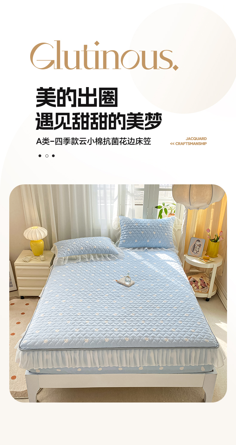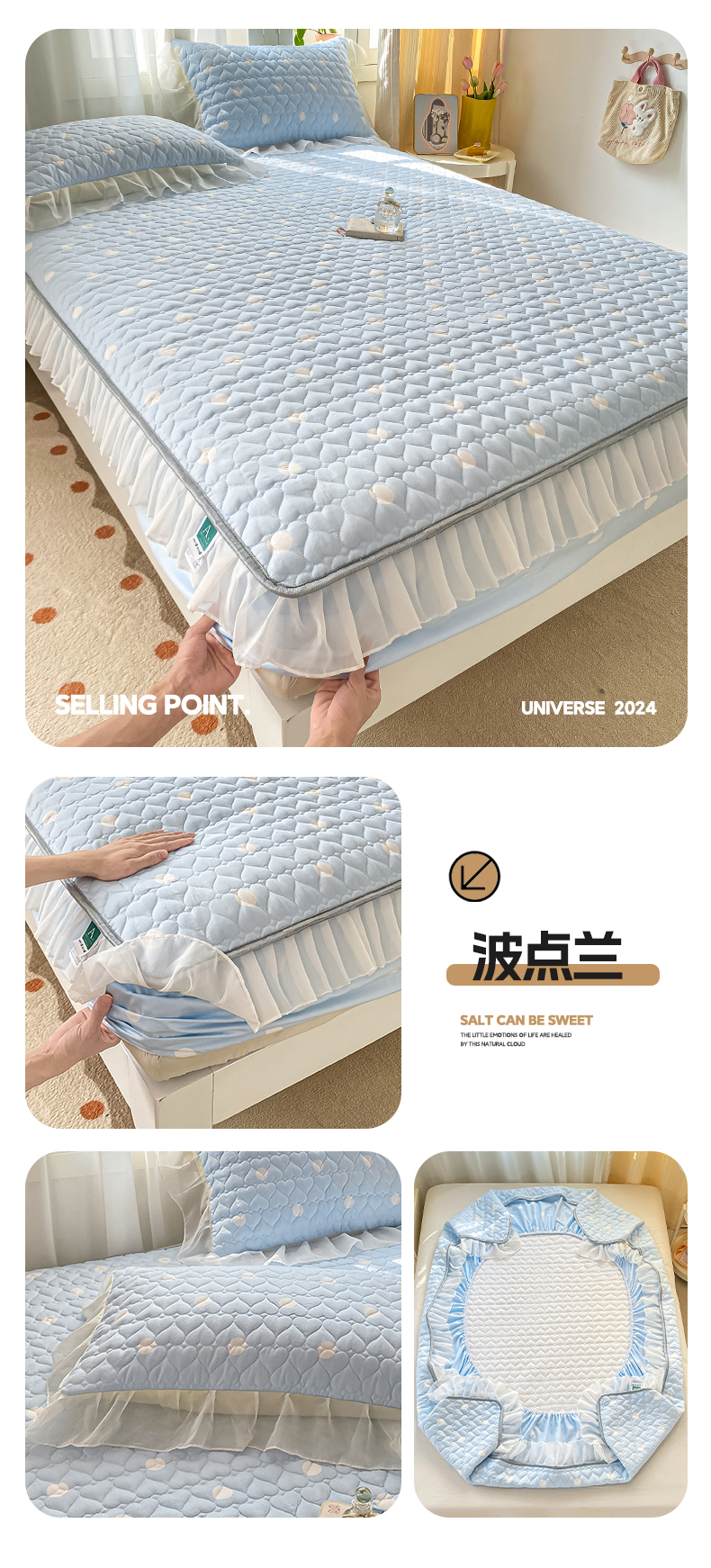 • 91家纺网 家纺一手货源 找家纺 眠势力 2025新款韩版花边夹棉床笠单件公主风四季款床垫保护套床罩 波点蓝