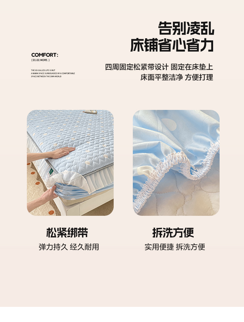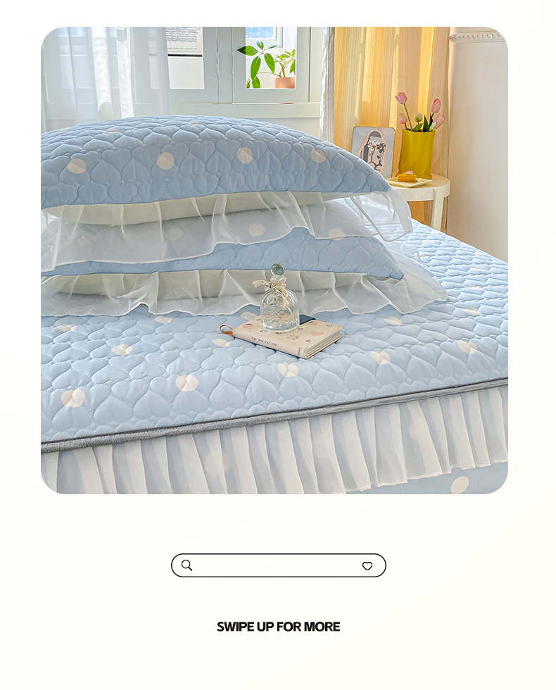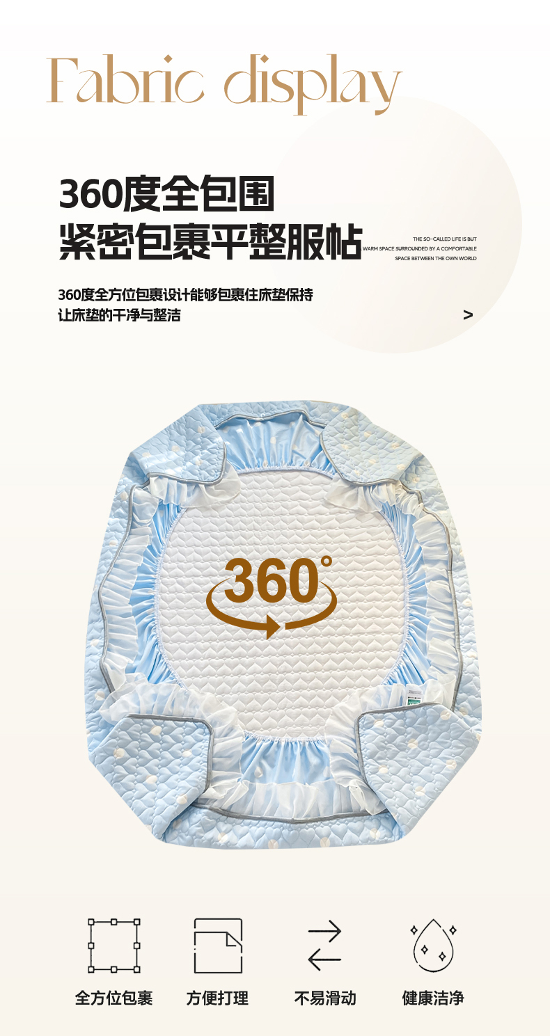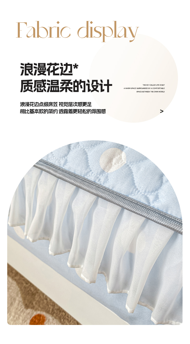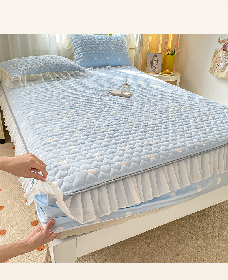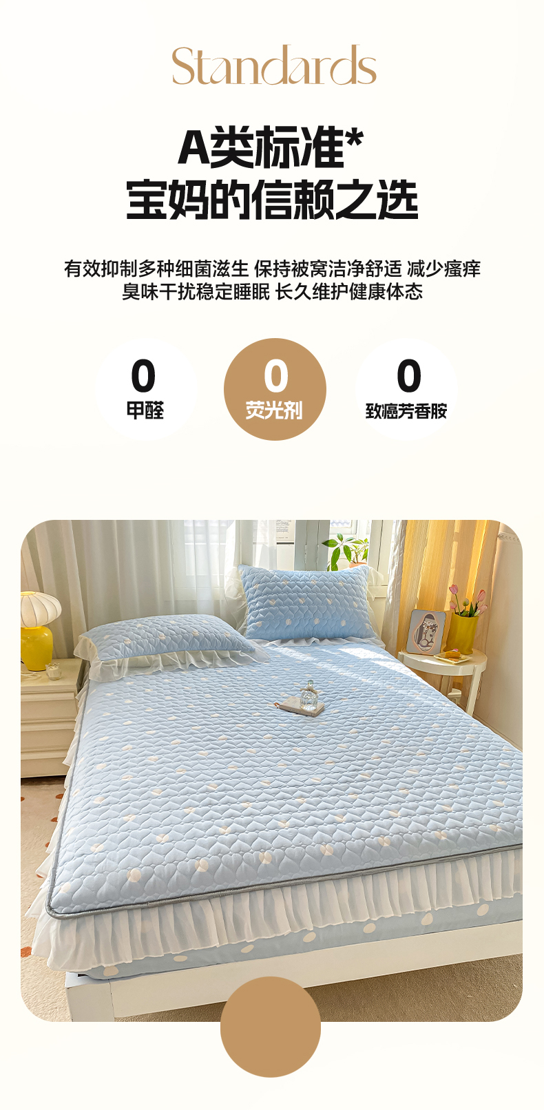 • 91家纺网 家纺一手货源 找家纺 眠势力 2025新款韩版花边夹棉床笠单件公主风四季款床垫保护套床罩 波点蓝