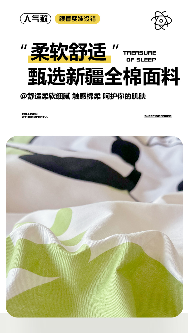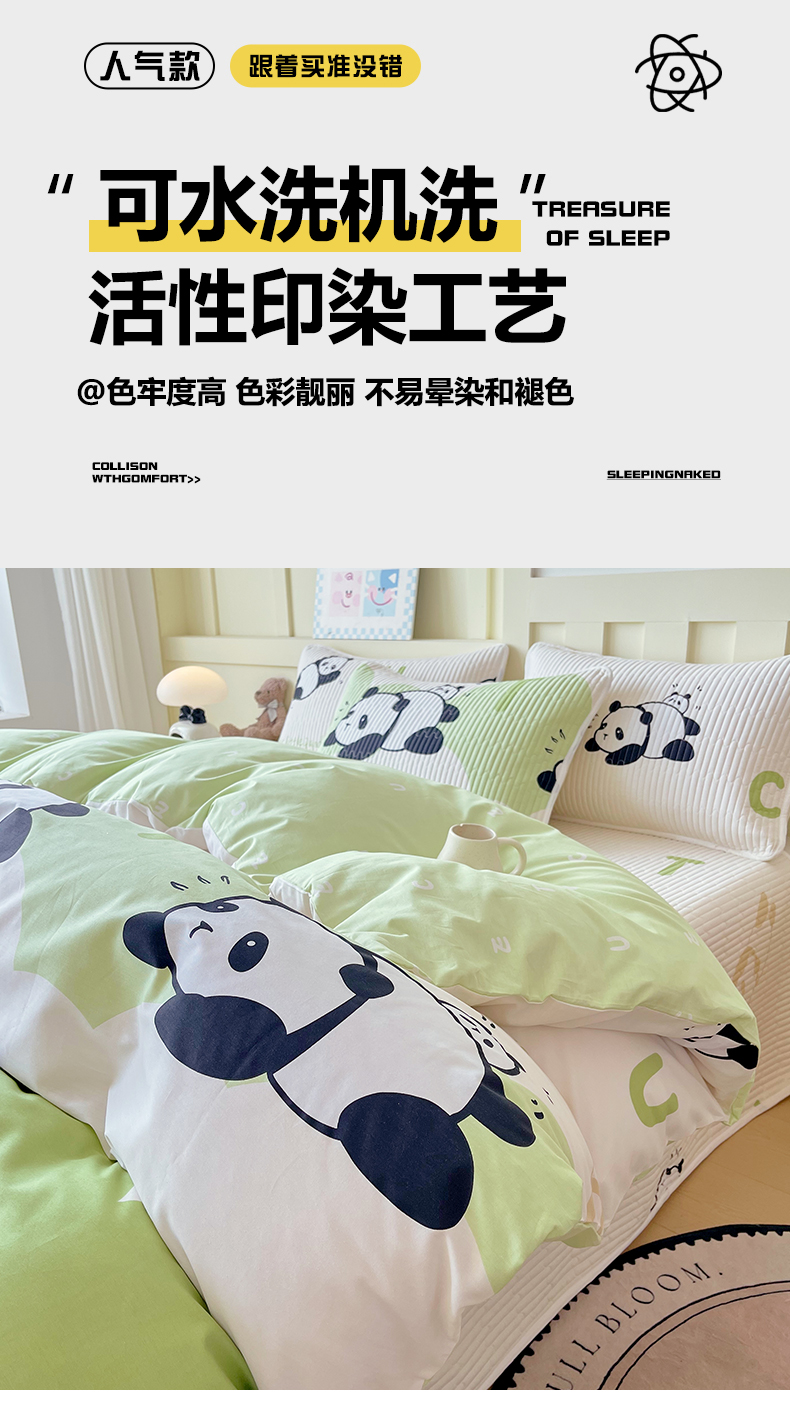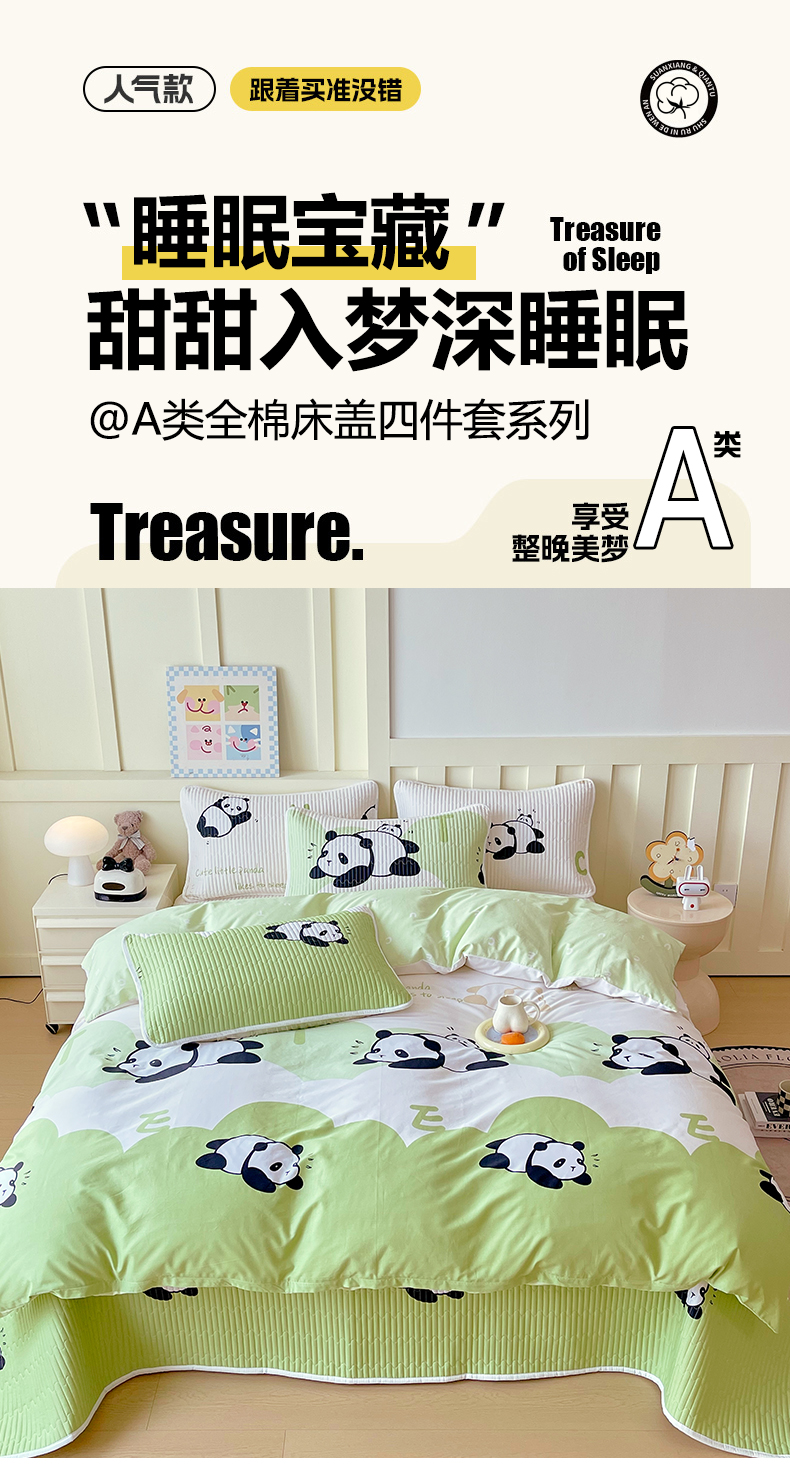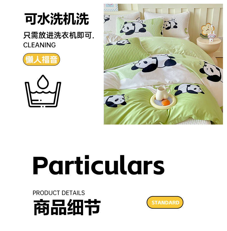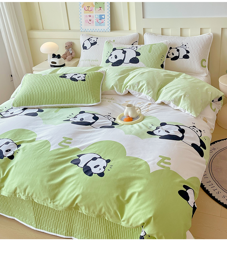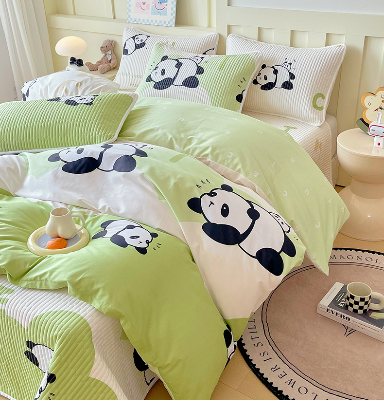 当前位置: 91家纺网 > 商品网购 > 床品套件 > 四件套 > 全棉普通四件套 > 2025新款A类全棉印花床盖四件套 可爱熊猫