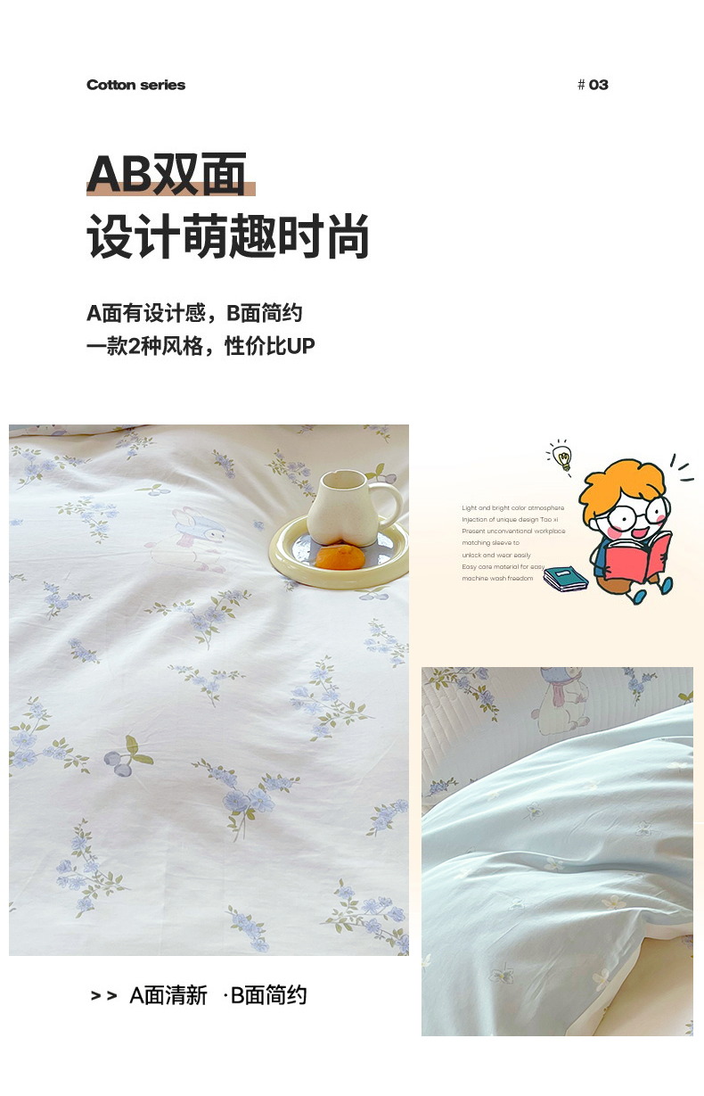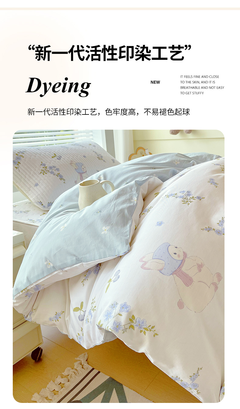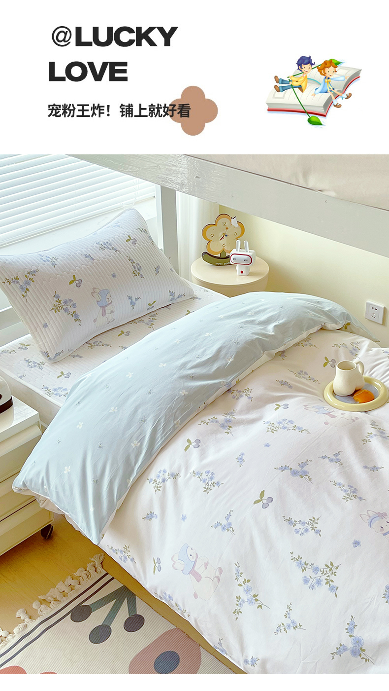 当前位置: 91家纺网 > 商品网购 > 床品套件 > 三件套 > 金鑫汇家纺2025新款A类宿舍全棉印花床盖三件套 花丛兔