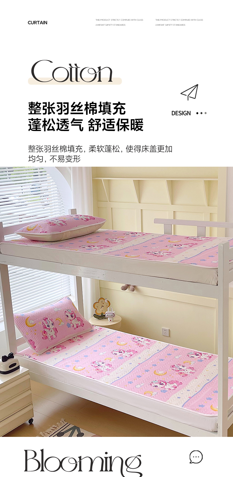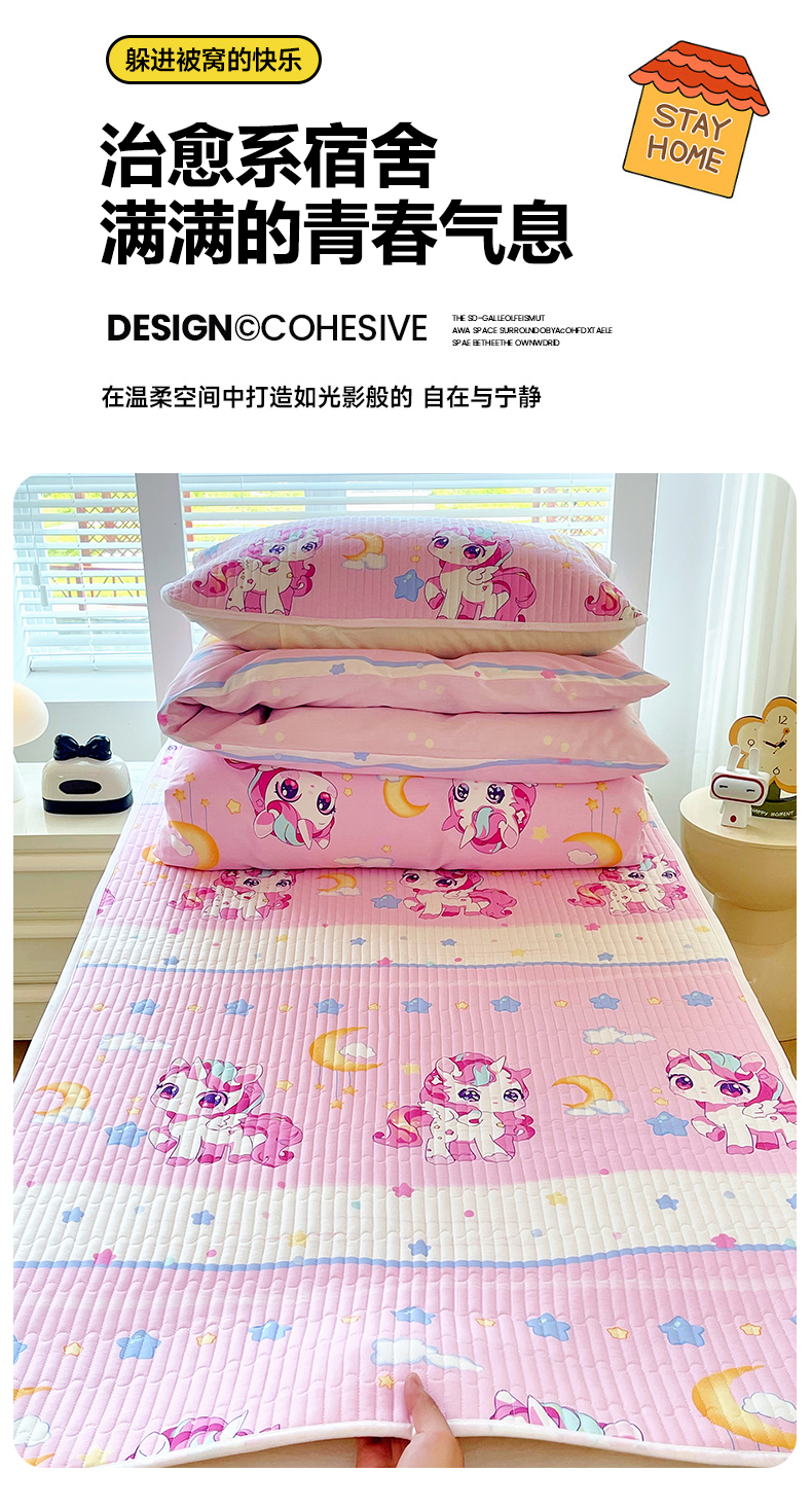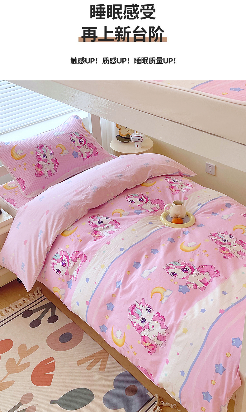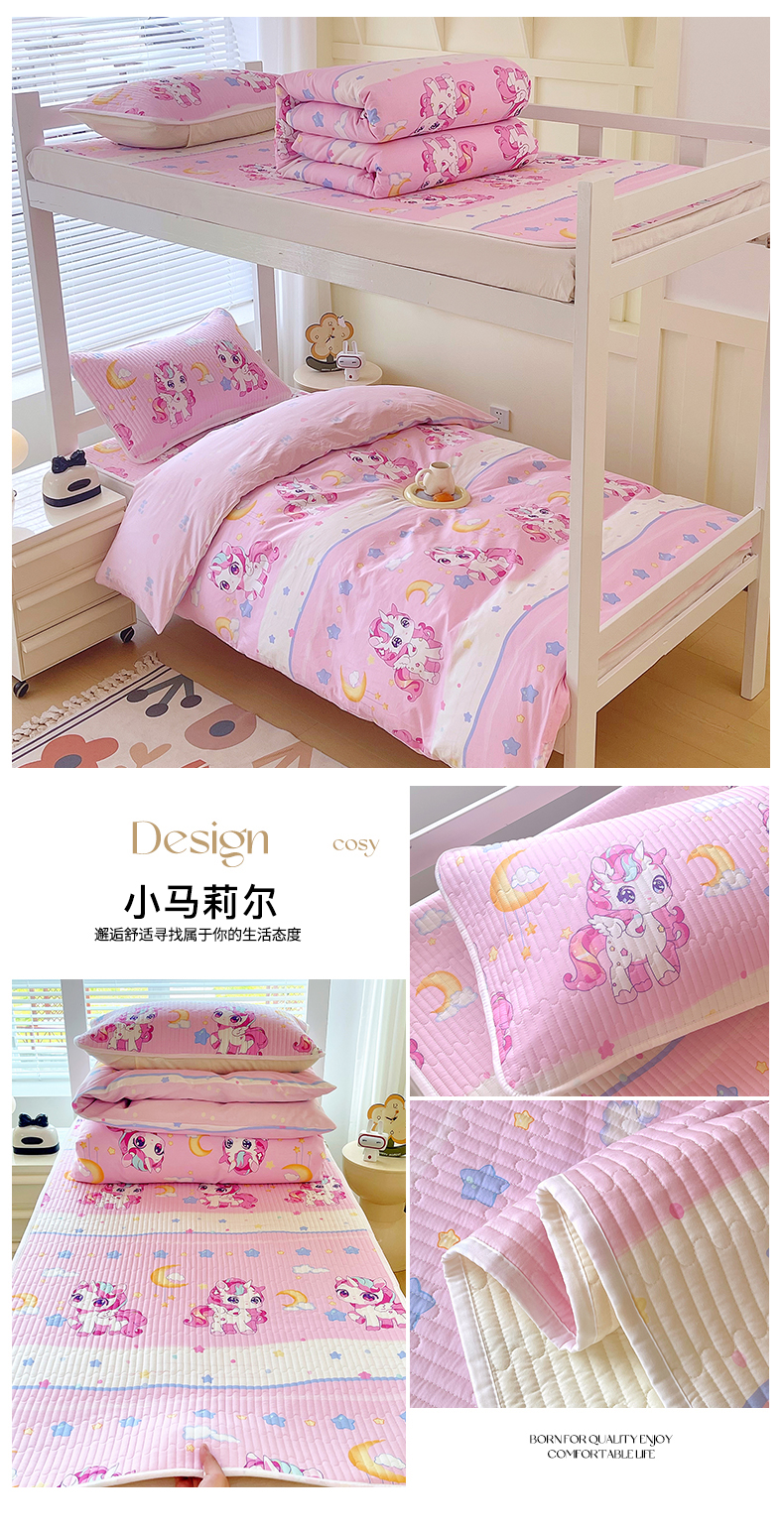 当前位置: 91家纺网 > 商品网购 > 床品套件 > 三件套 > 金鑫汇家纺2025新款A类宿舍全棉印花床盖三件套 小马莉尔