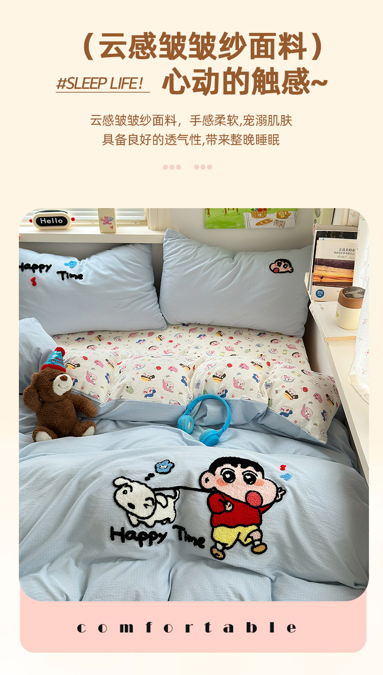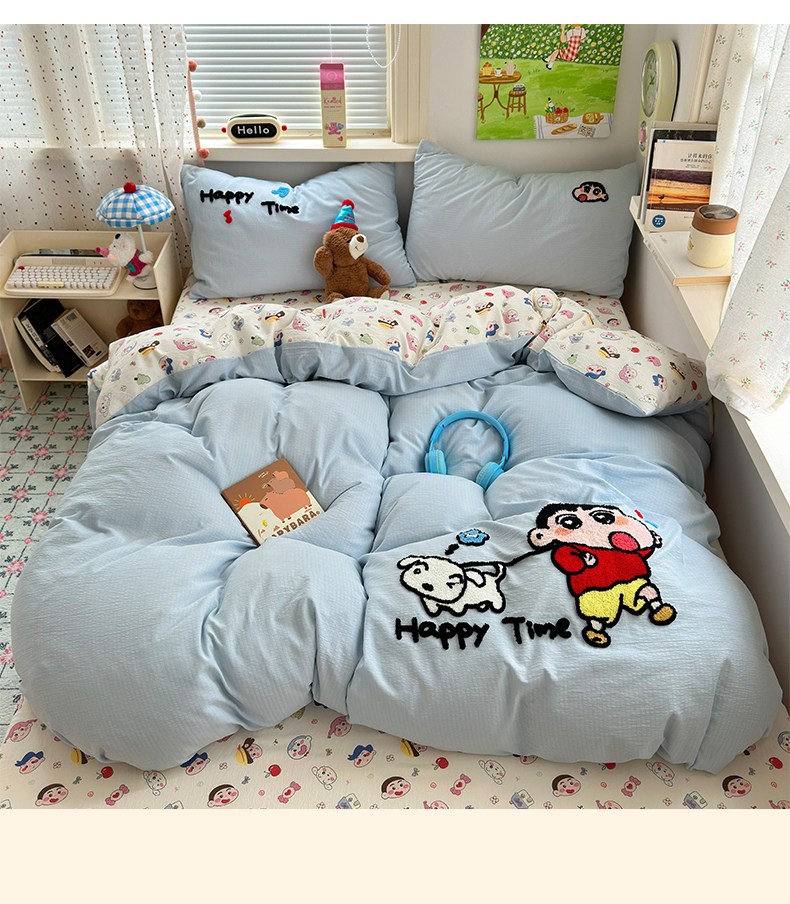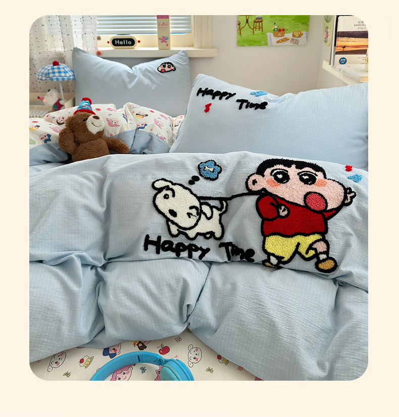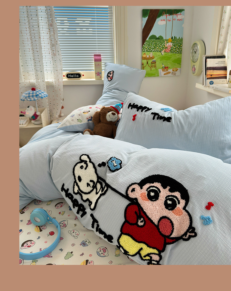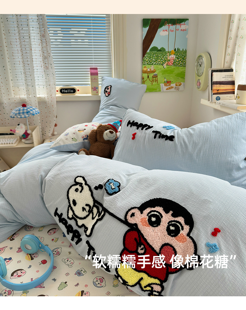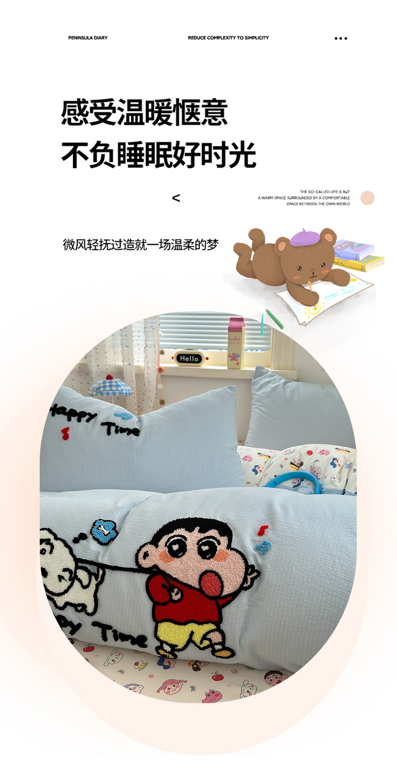 当前位置: 91家纺网 > 商品网购 > 床品套件 > 四件套 > 毛巾绣四件套 > 三元色 2025新款云感毛巾绣四件套 调皮小新