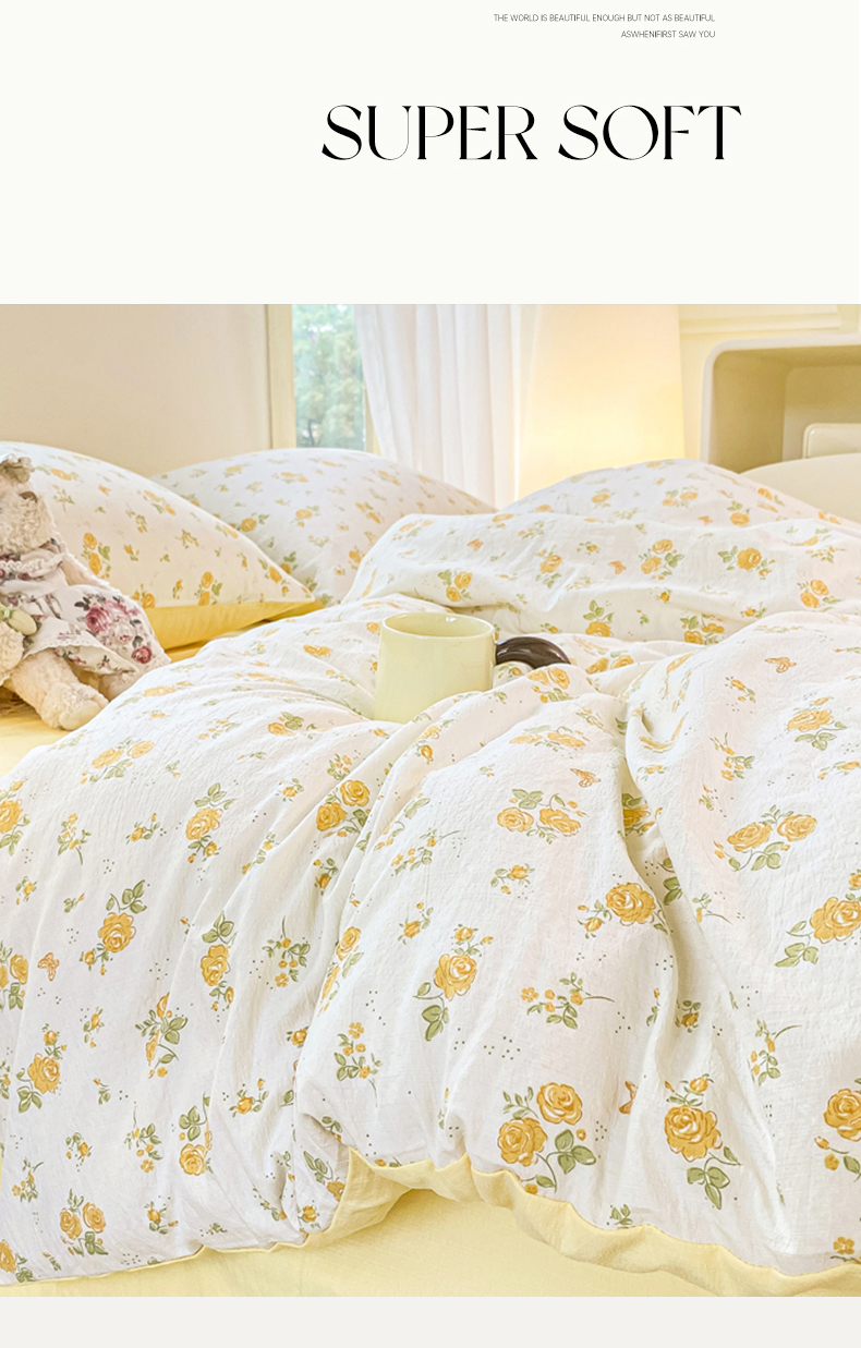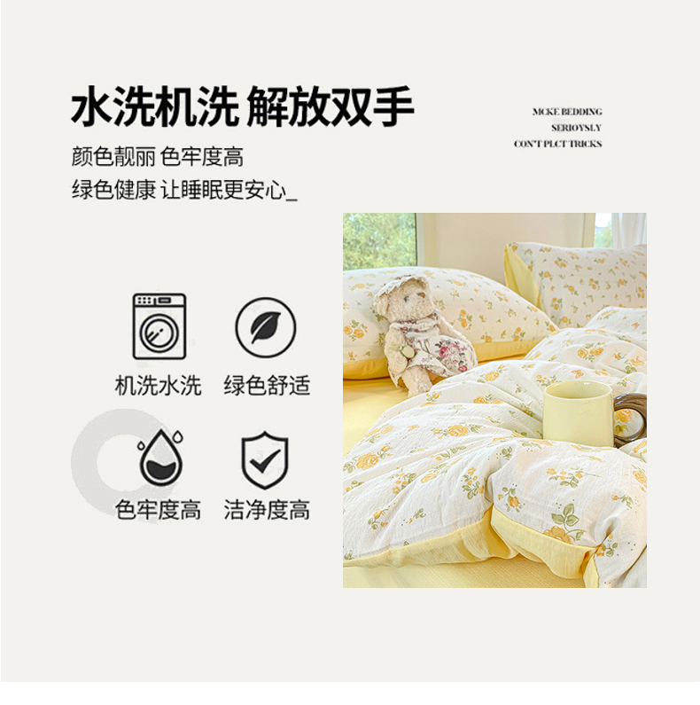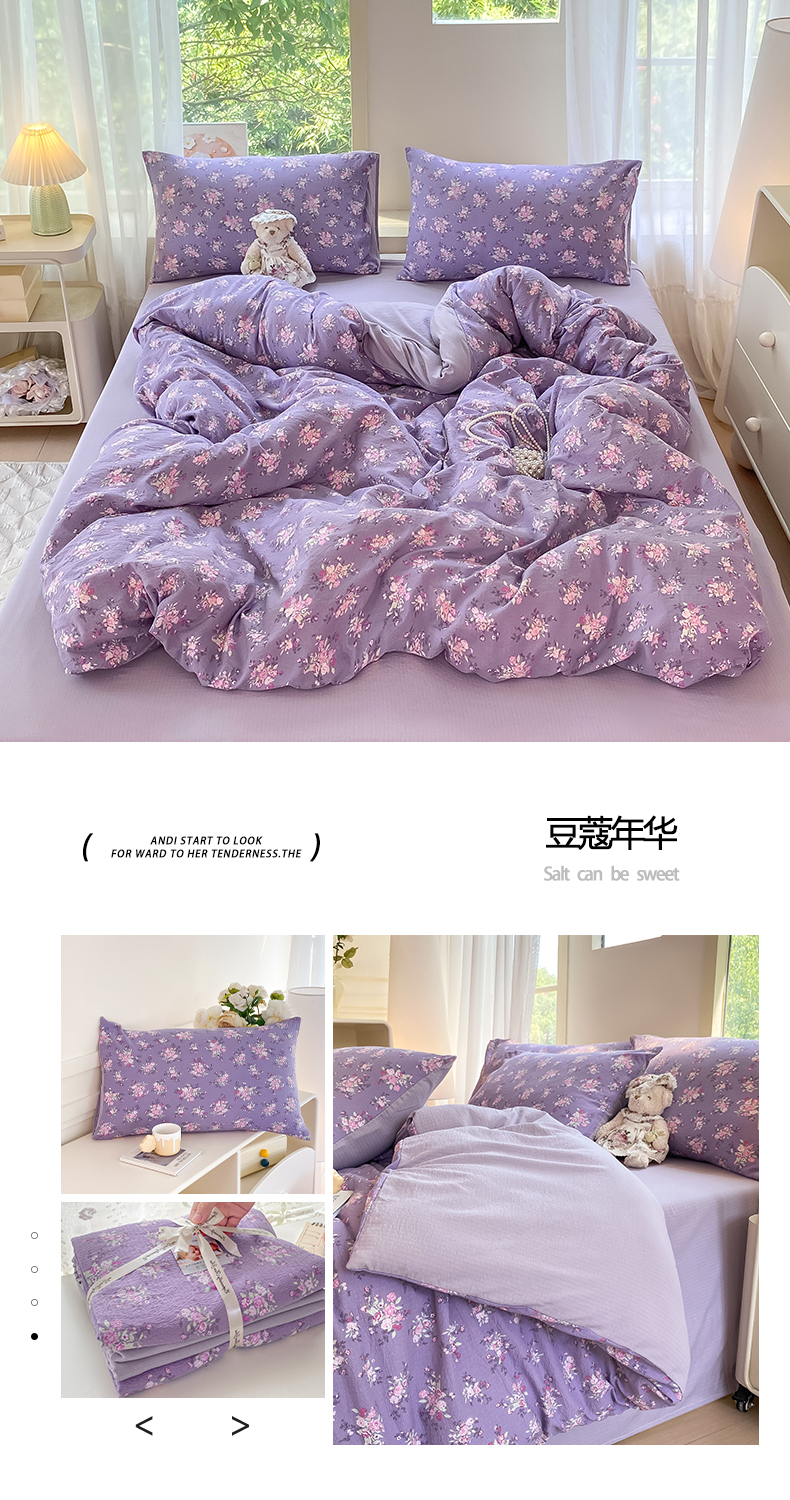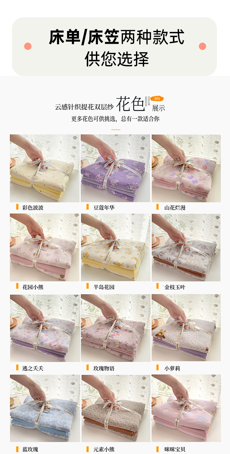 当前位置: 91家纺网 > 商品网购 > 床品套件 > 四件套 > 双层纱四件套 > 雅阁尔家纺 2025新款直播小红书ins风针织提花双层纱四件套小碎花被套床笠三件套-平铺 花园小熊