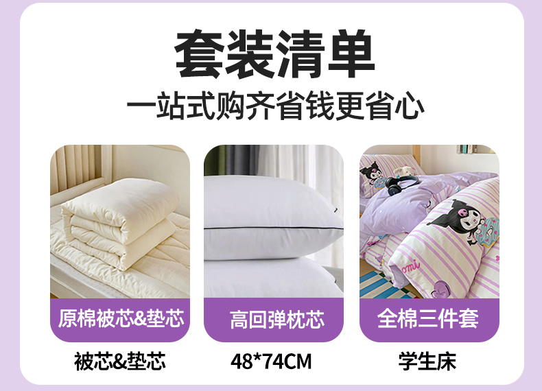 0.9m床六件套【床单三件套+春秋被约3斤+枕芯+垫芯】 | ¥176.00 |