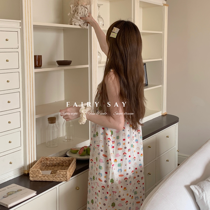 当前位置: 91家纺网 > 商品网购 > 居家日用 > 睡衣/家居服套装 > 妍景家居生活馆 2025新款纱布吊带睡裙 紫色蝴蝶结猫咪