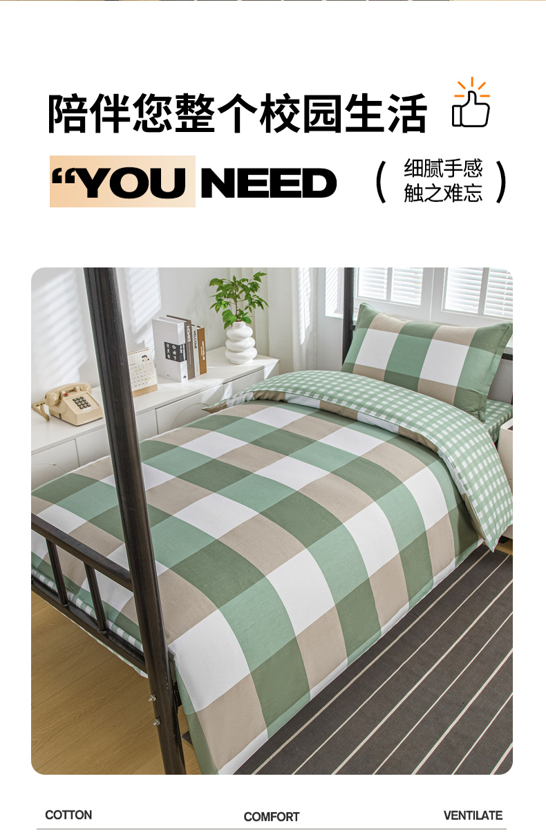 当前位置: 91家纺网 > 商品网购 > 床品套件 > 四件套 > 全棉普通四件套 > 乐旗家纺 2025新款13372全棉床笠款学生宿舍三件套六件套多件套 校园笔记-绿