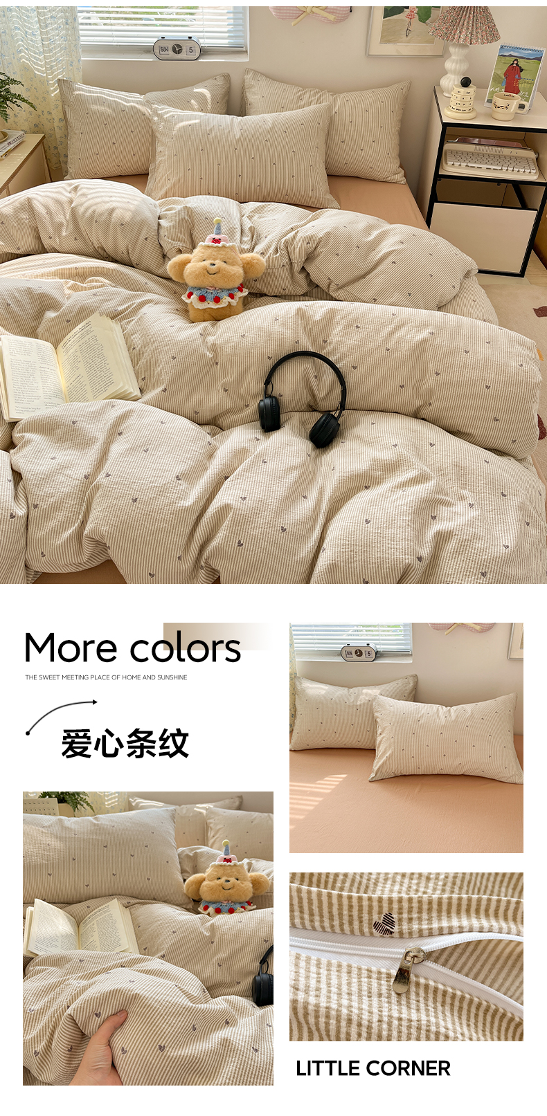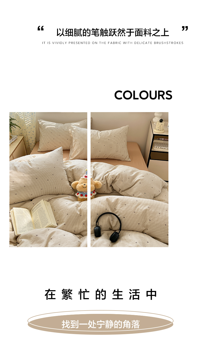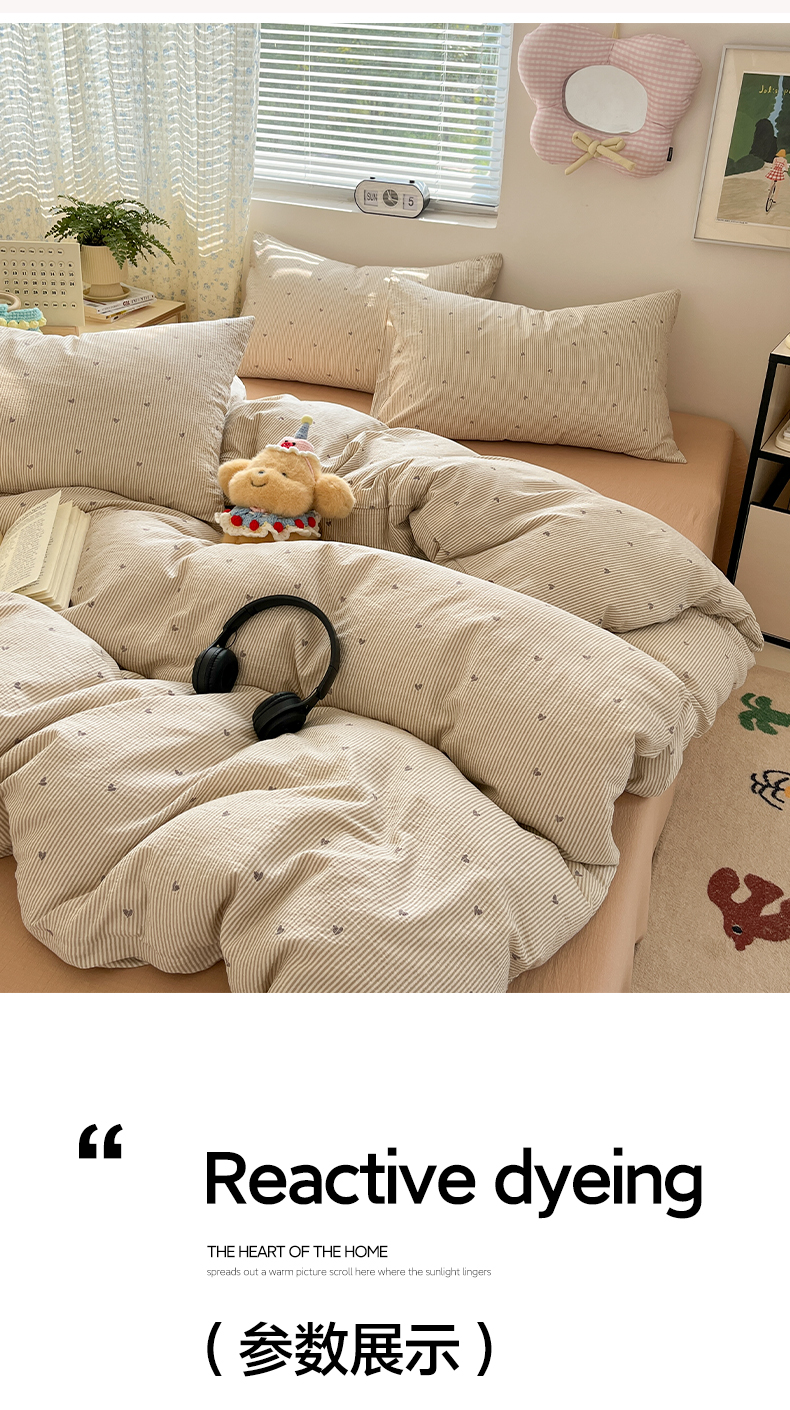 当前位置: 91家纺网 > 商品网购 > 床品套件 > 四件套 > 其它四件套 > 彩韵家纺 2025新款超柔云感m印花双层纱四件套 爱心条纹