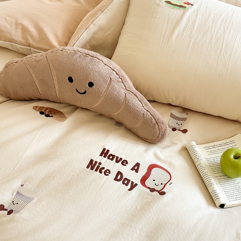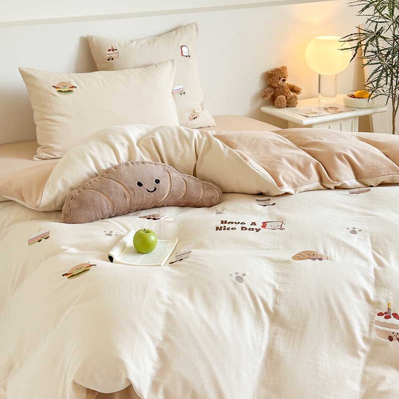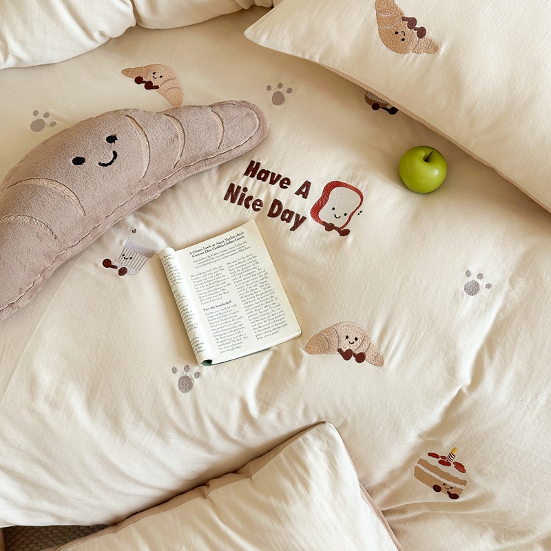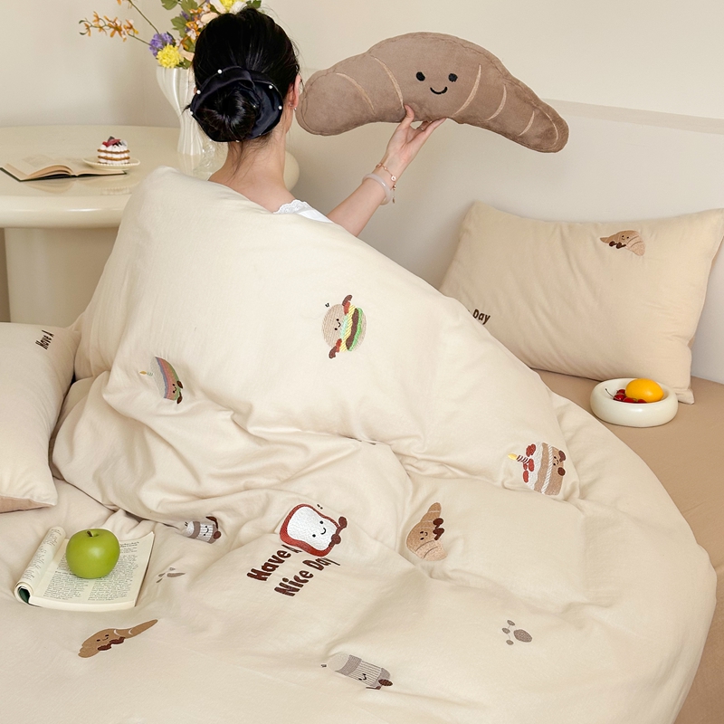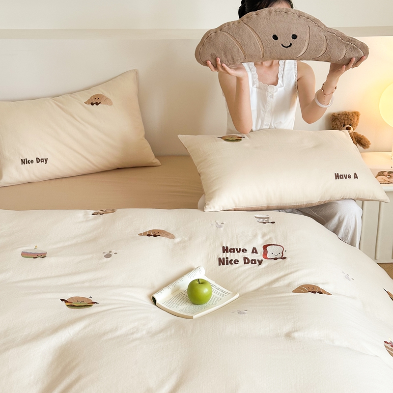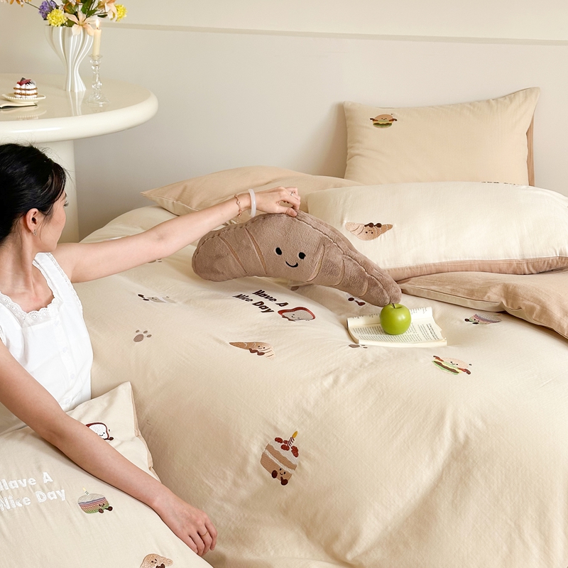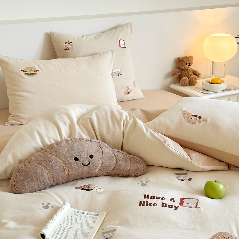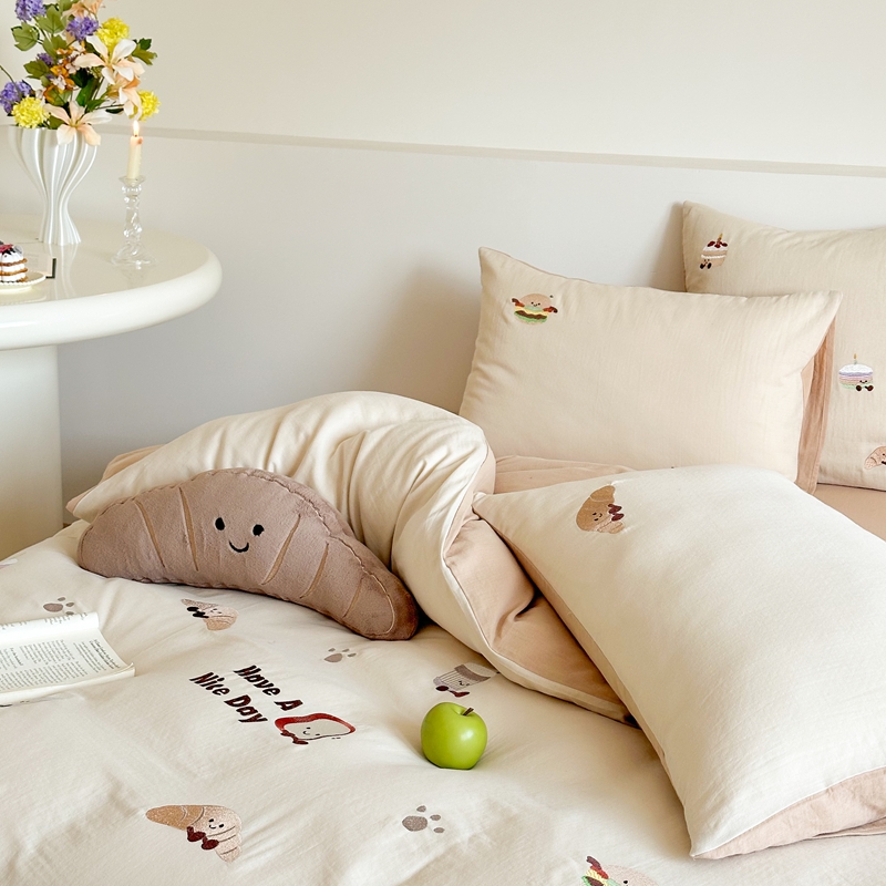 (总)西西家居2025新款A类超柔有氧双层纱四件套-趣味可颂(券后不低于328)