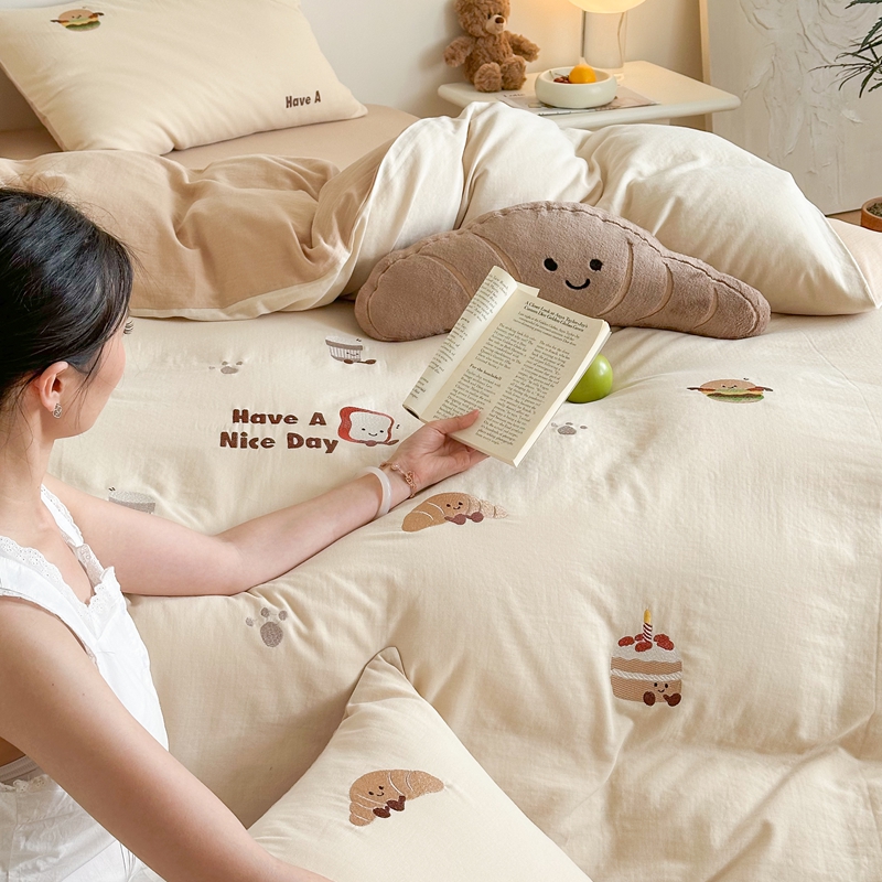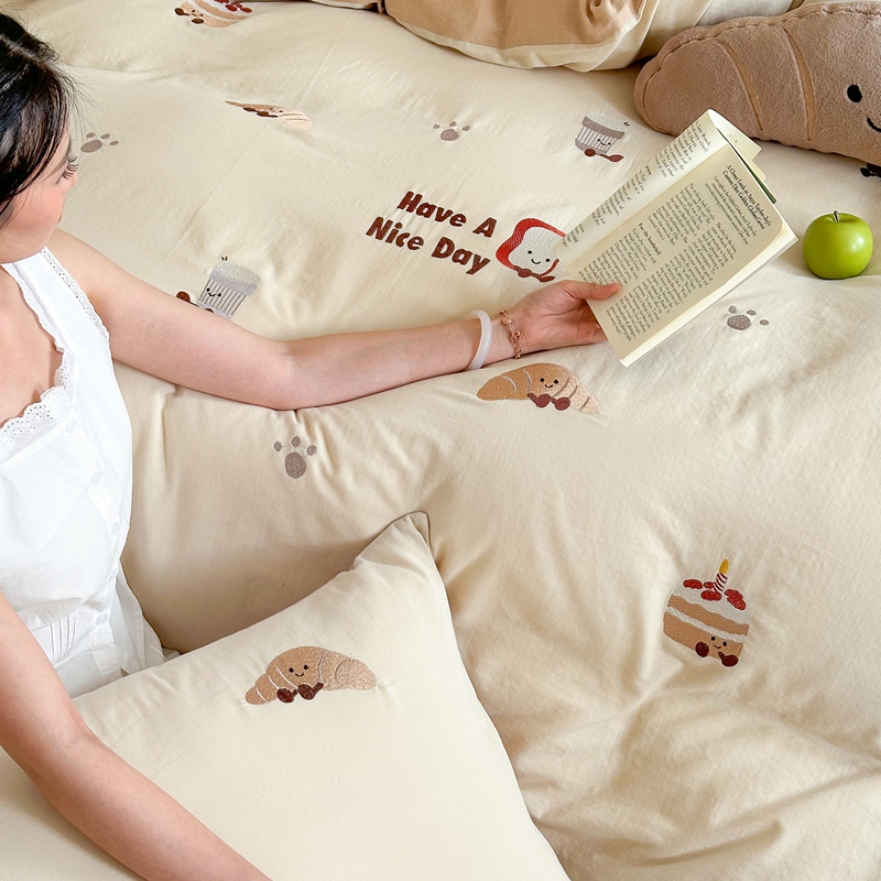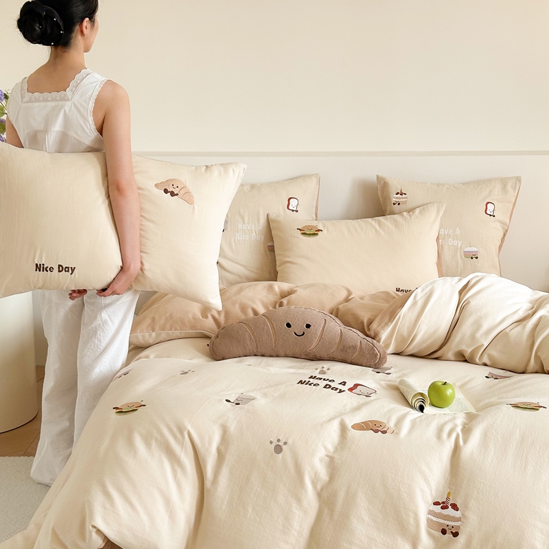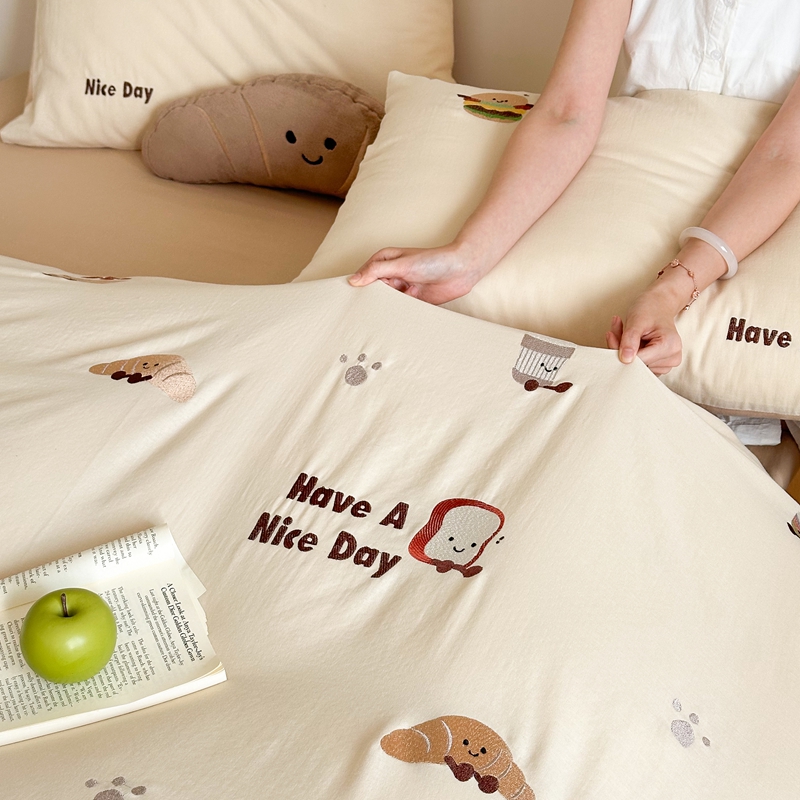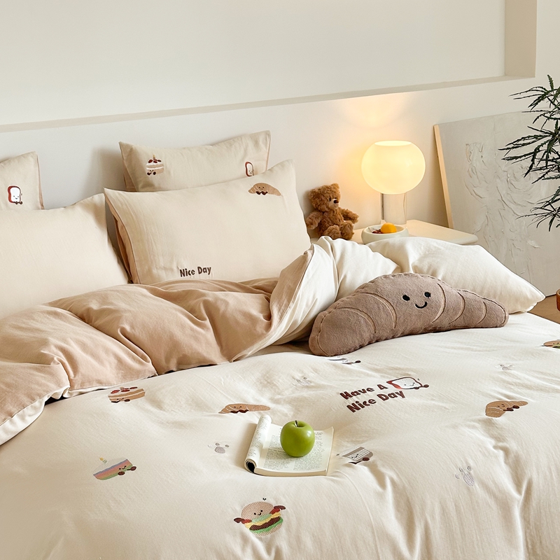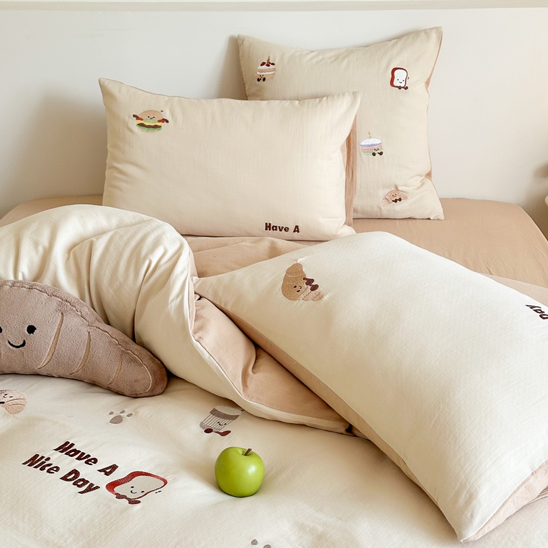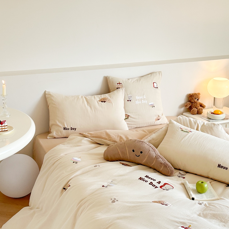 (总)西西家居2025新款A类超柔有氧双层纱四件套-趣味可颂(券后不低于328)