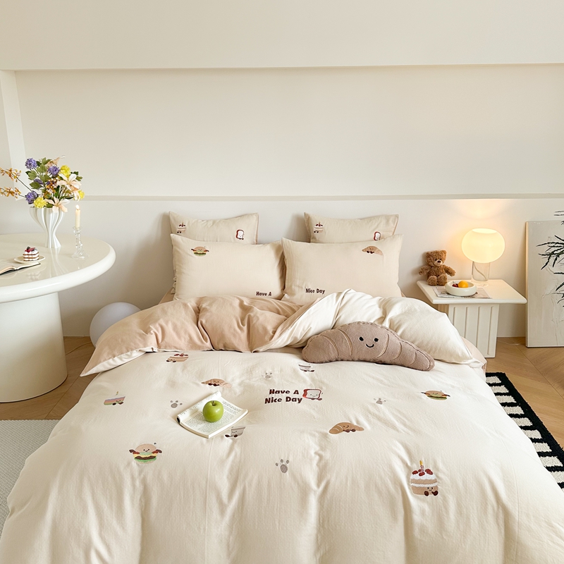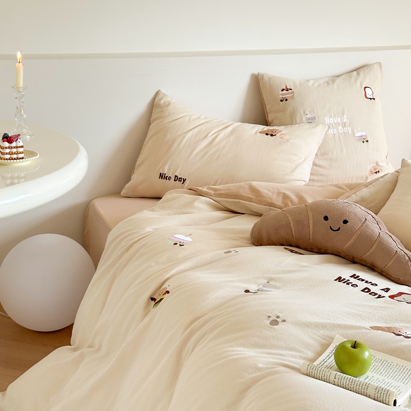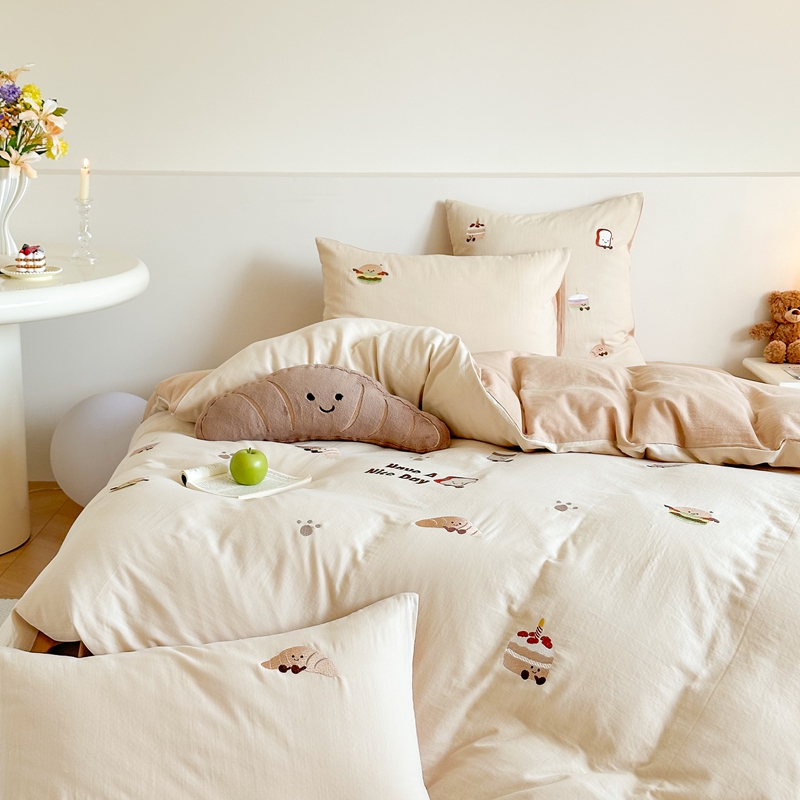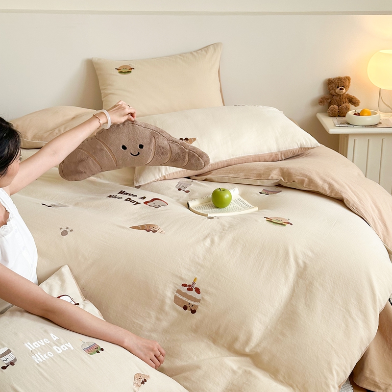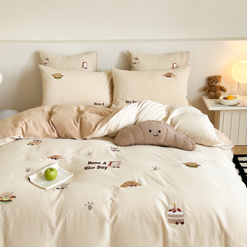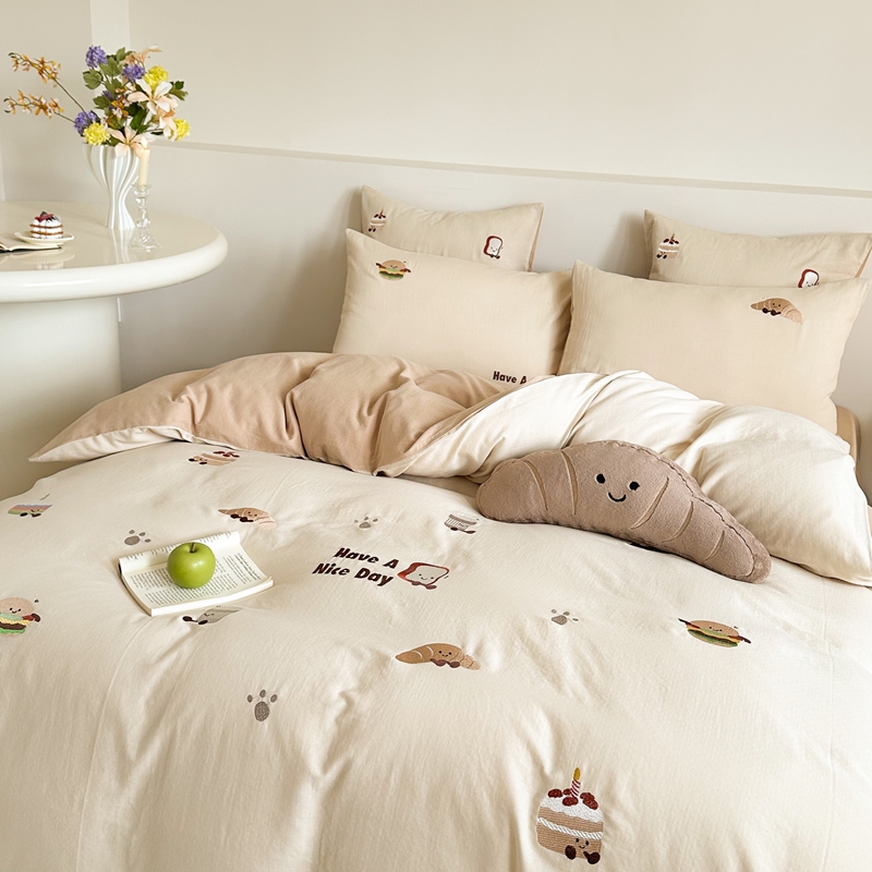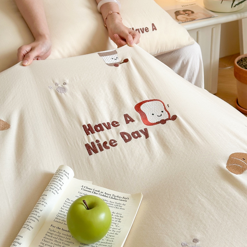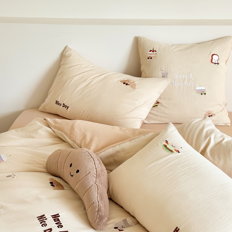 (总)西西家居2025新款A类超柔有氧双层纱四件套-趣味可颂(券后不低于328)