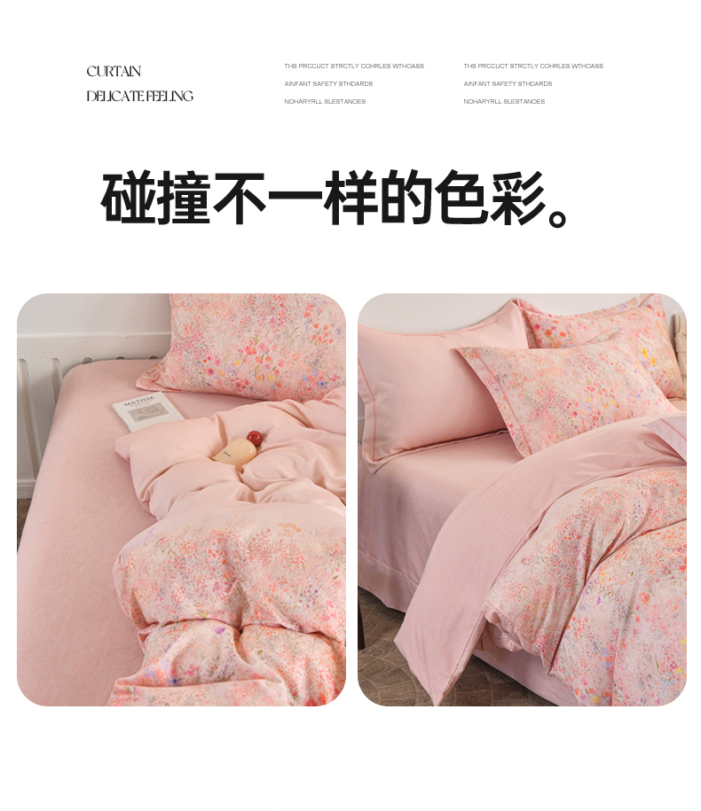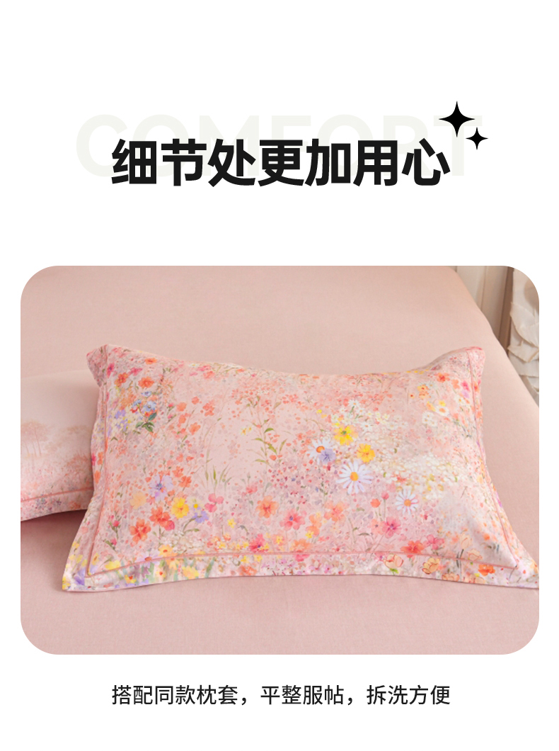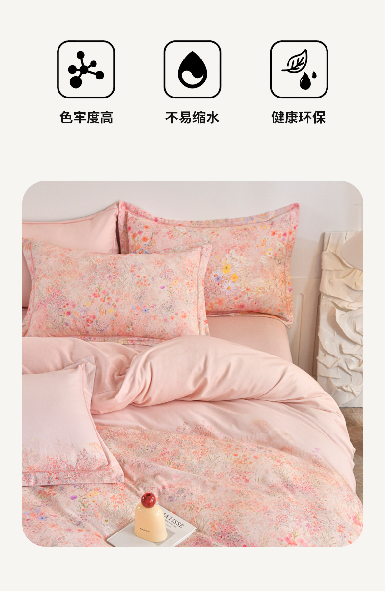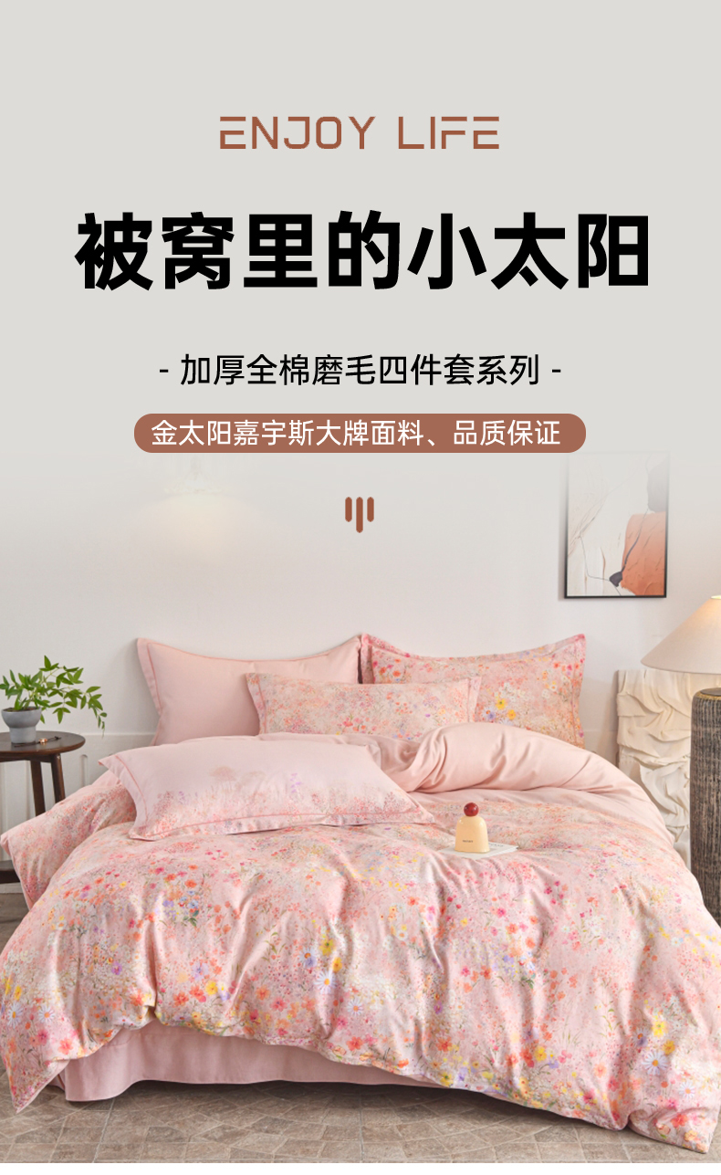 商品名称:磨毛世家家纺2025新款金太阳铂金四件套加厚四件套 蔓丘-粉