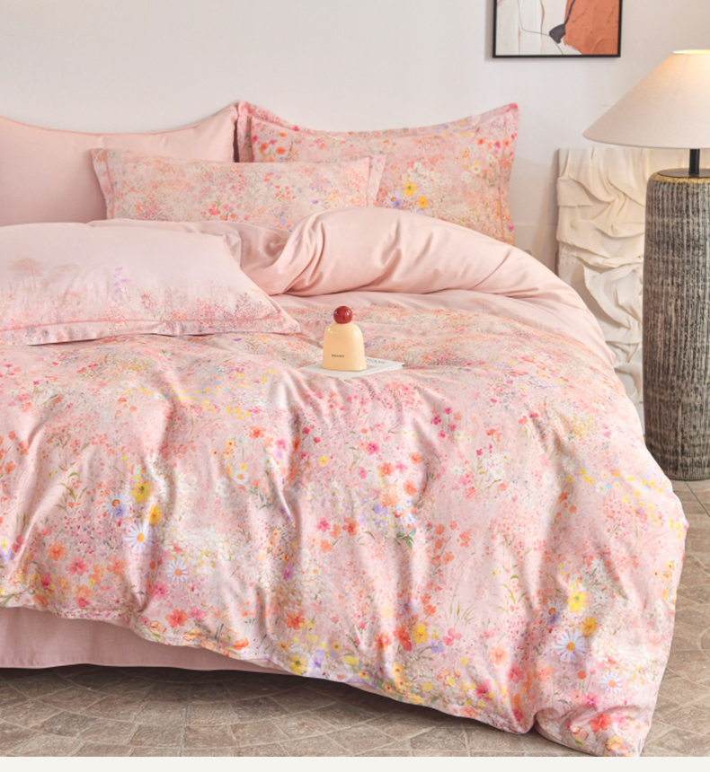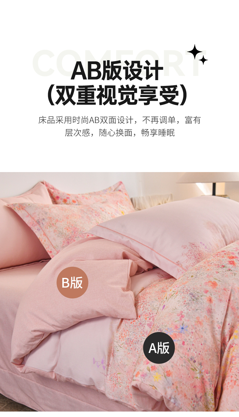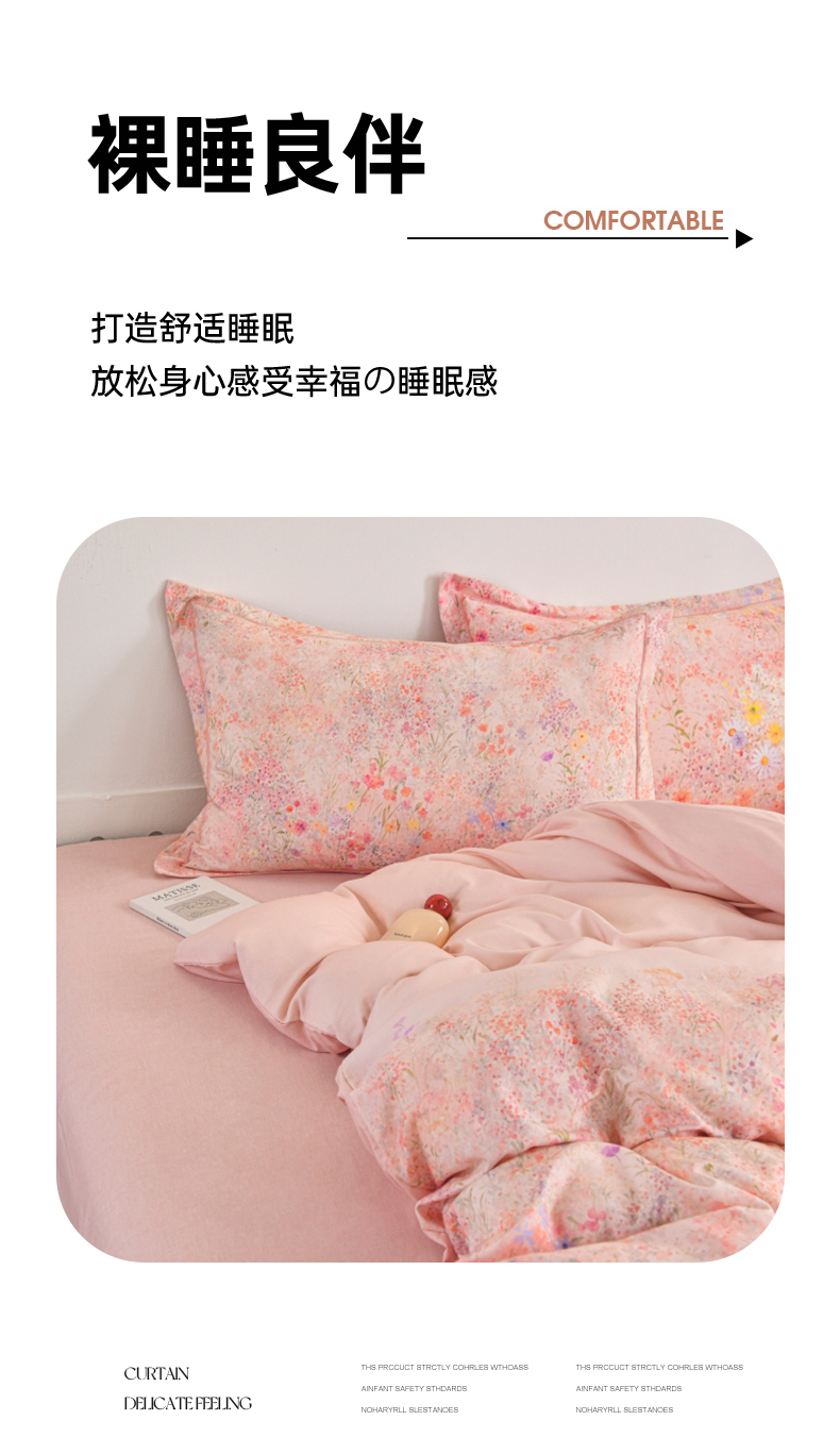 商品名称:磨毛世家家纺2025新款金太阳铂金四件套加厚四件套 蔓丘-粉