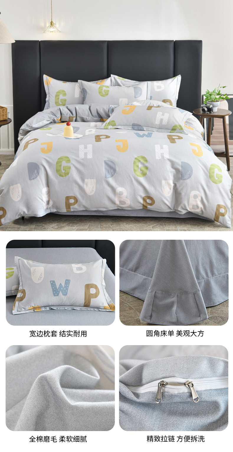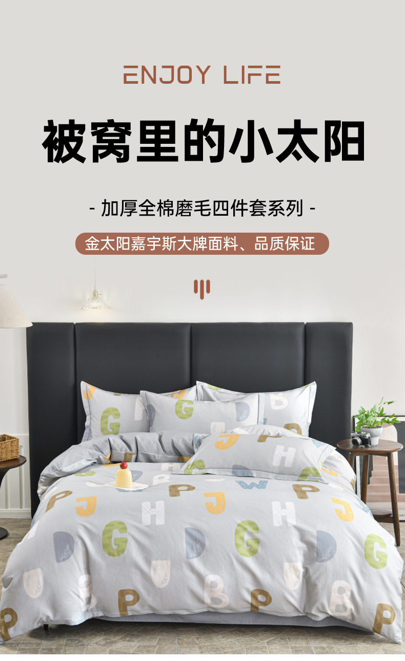商品名称:磨毛世家家纺2025新款金太阳铂金四件套加厚四件套 字秒-灰
