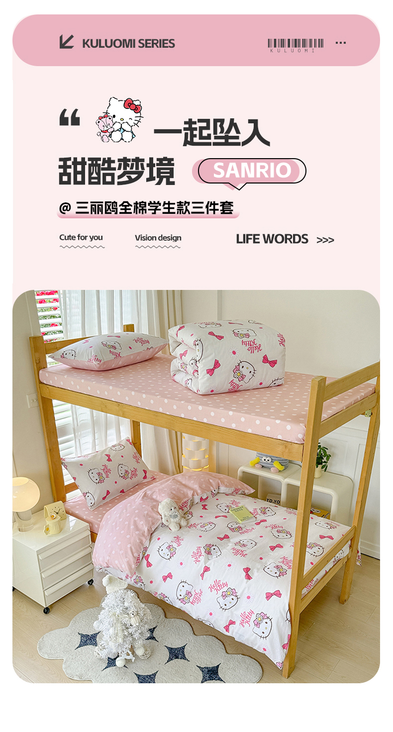商品名称:(总)玉元坊 2025新款三丽鸥全棉纯棉学生款学生宿舍上下铺三件套