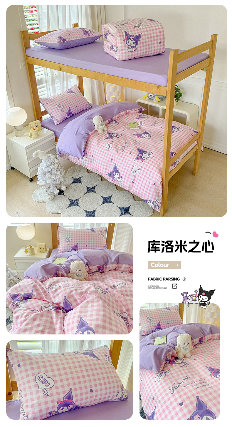 (总)玉元坊 2026新款正版授权三丽鸥系列全棉纯棉床单四件套学生三件套-库洛米系列,库洛米【简约款】,库洛米宝贝【简约款】,甜甜库洛米【简约款】,条纹库洛米【简约款】,樱桃库洛米【简约款】,紫格库洛米【简约款】