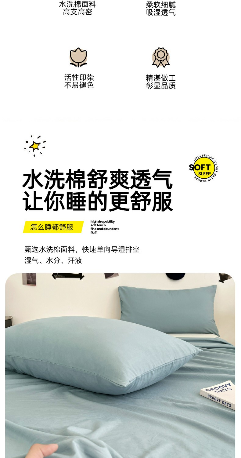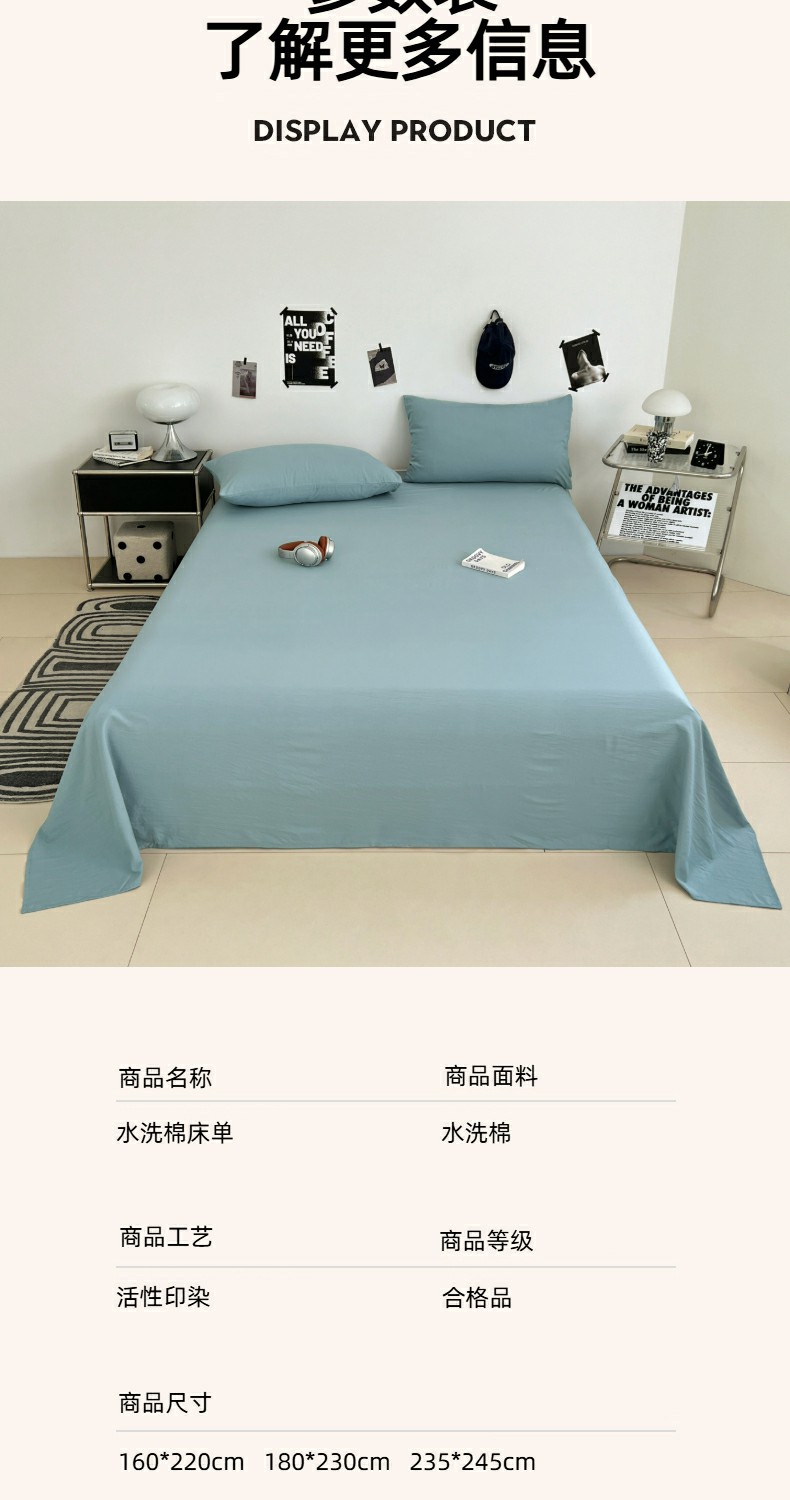 优尚佳生活馆 2025新款亲肤水洗棉纯色单品床单 品悦