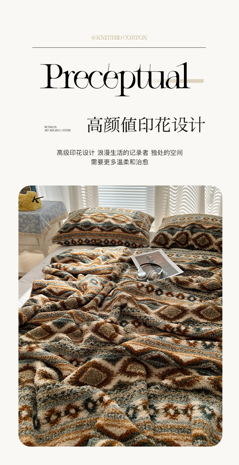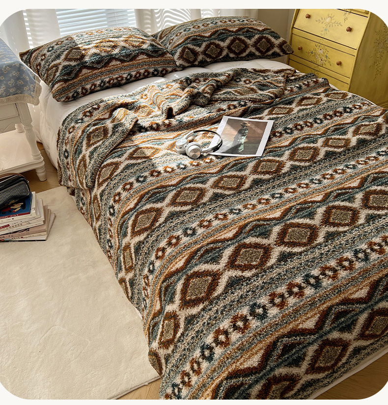 商品名称:舒隅家纺 A类高级感半边绒三角针毛毯毯子 波西米亚-绿