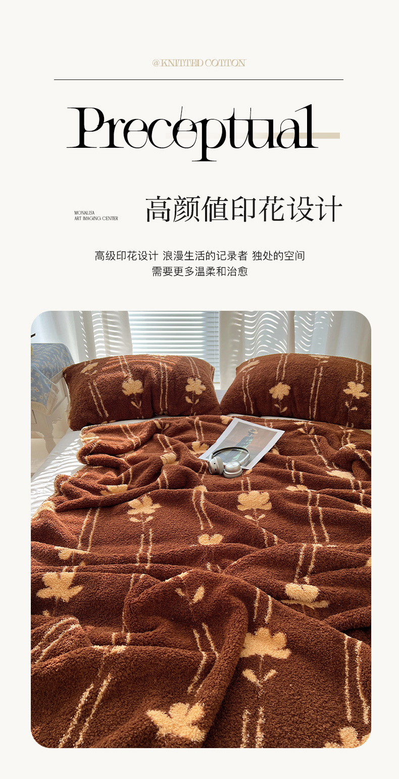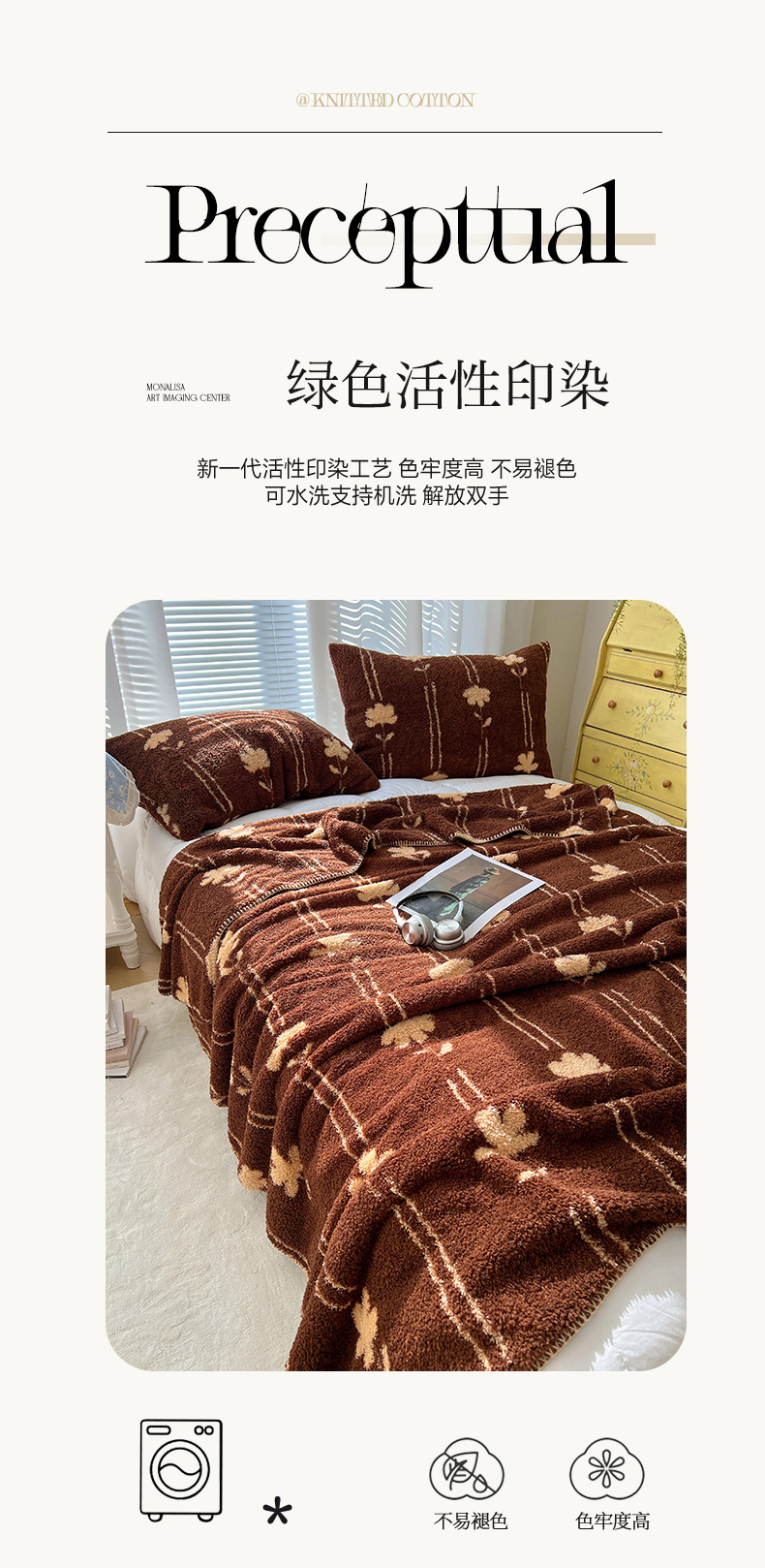 商品名称:舒隅家纺 A类高级感半边绒三角针毛毯毯子 花间小路