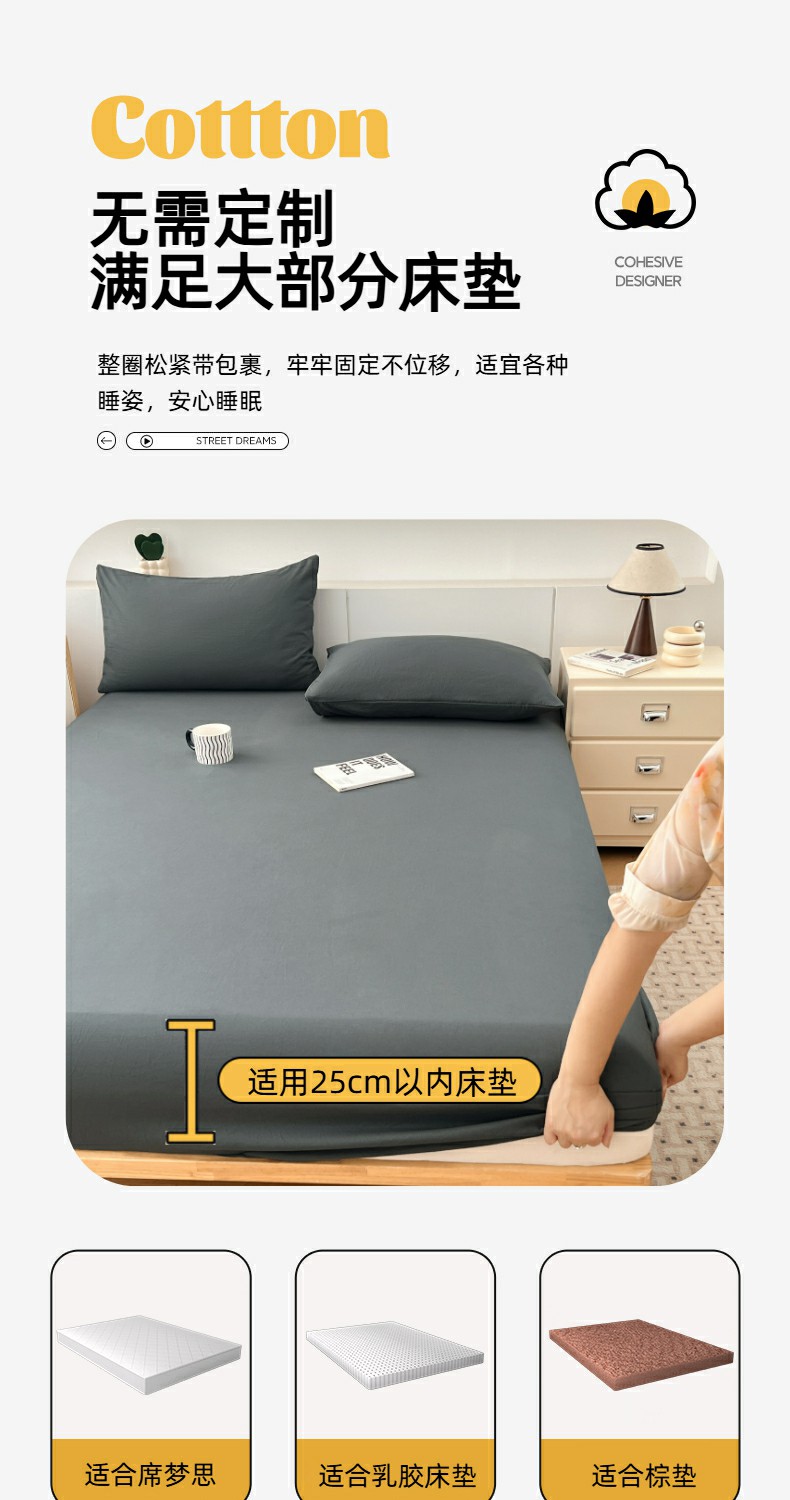优尚佳生活馆 2025新款亲肤水洗棉纯色单品床笠 雅青