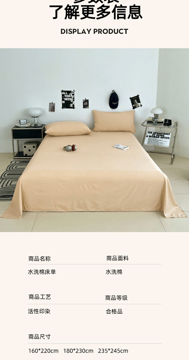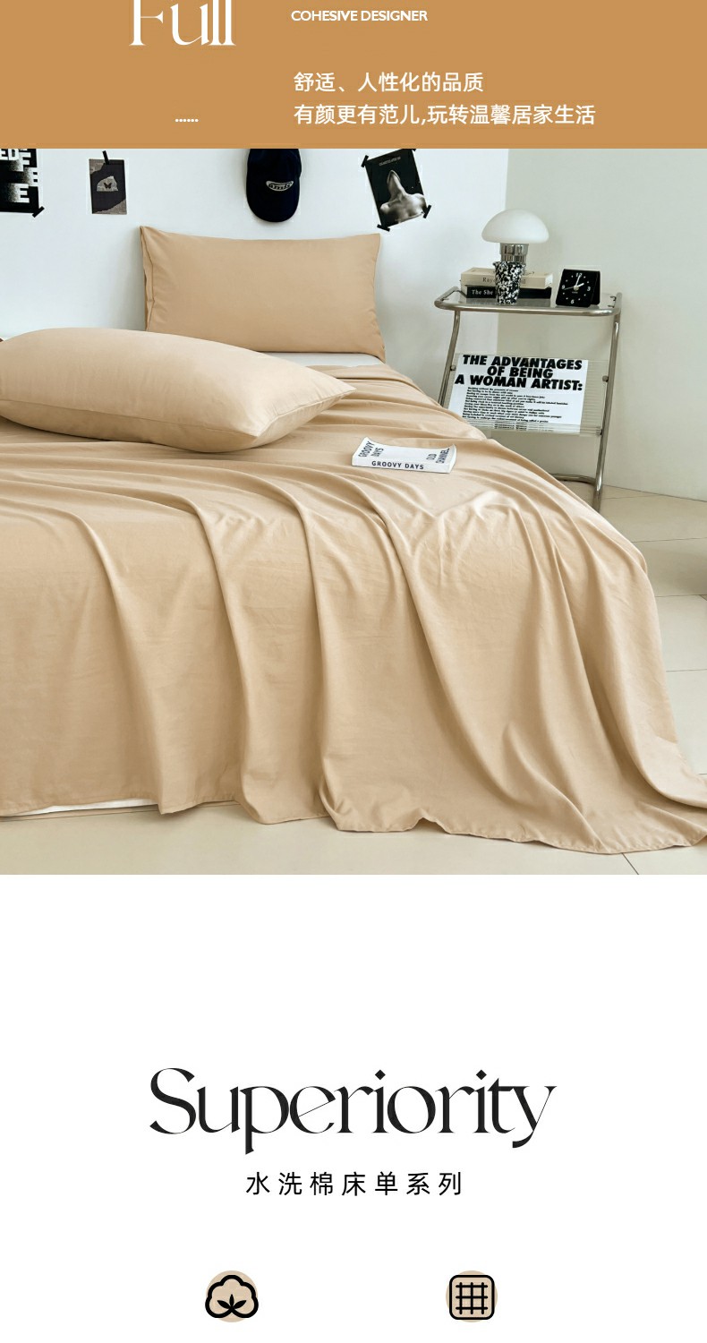 优佳优品 2025新款亲肤水洗棉纯色单品床单 伦敦咖