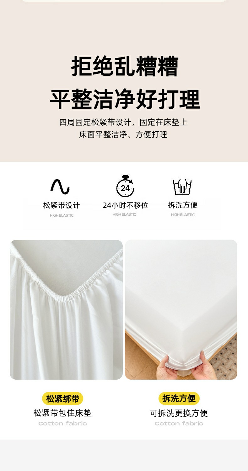 优佳优品 2025新款亲肤水洗棉纯色单品床笠 乳白