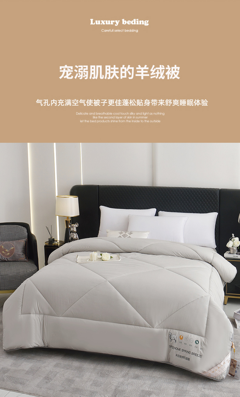 • 91家纺网 家纺一手货源 找家纺 棠婷 2025新款羊绒被-纯色系列 灰色