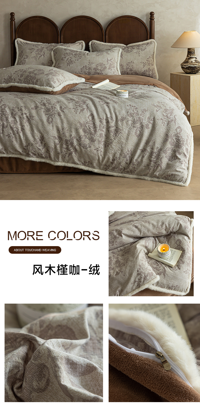 商品名称:迷尚家居 2025新款复古色织棉麻牛奶绒棉加绒四件套 风木槿咖-绒