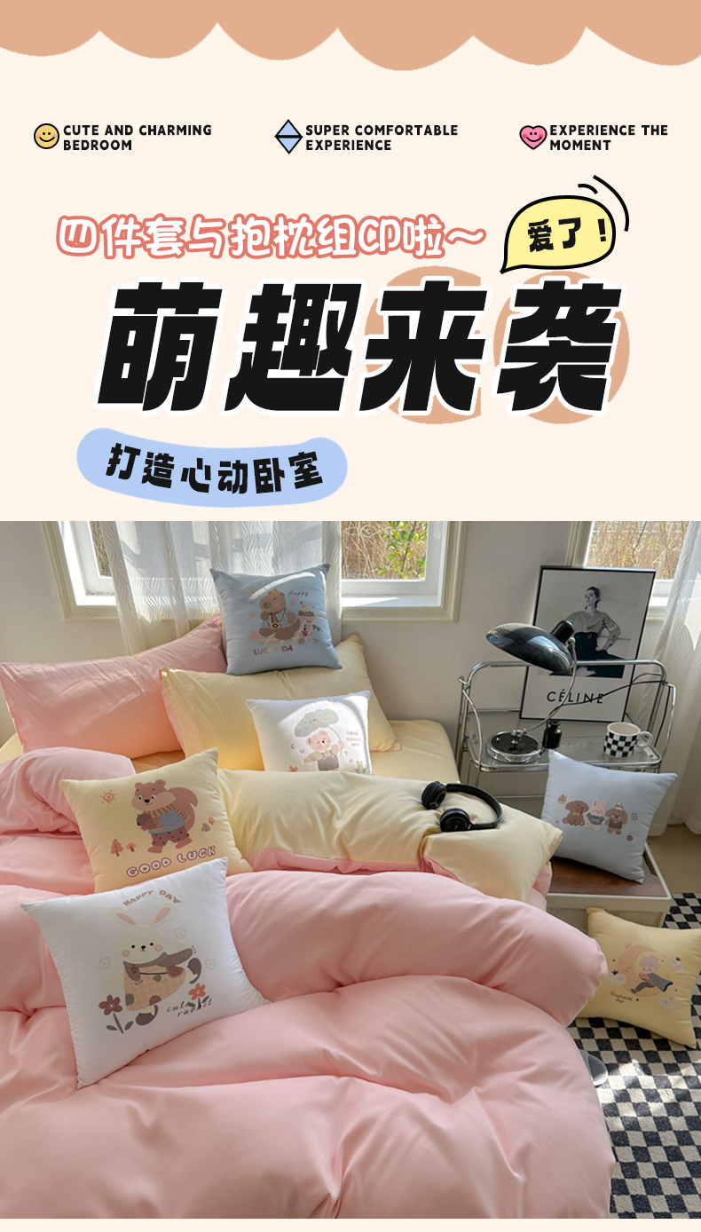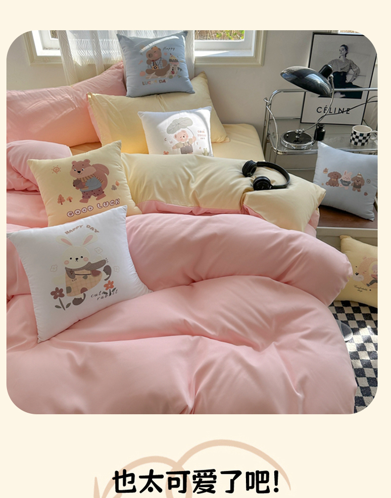 2024新款学生季卡通水洗棉四件套夏天宿舍学生三件套,早安兔,熊猫派对,字母小熊,m乐园,爱心草莓兔,遨游兔,草莓格格,草莓甜心,花园萌兔,可爱小熊,萌宠世界,牛油熊果果,青春印记,森林伙伴,盛夏之约,象模像样鸭,快乐小恐龙,英伦熊
