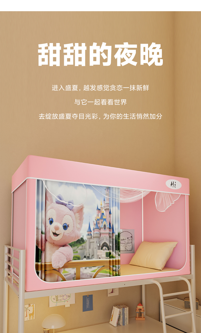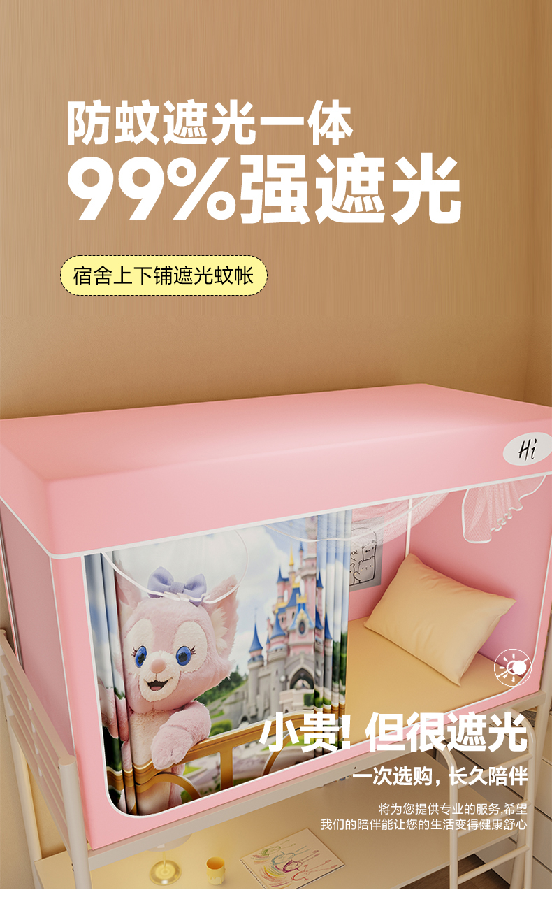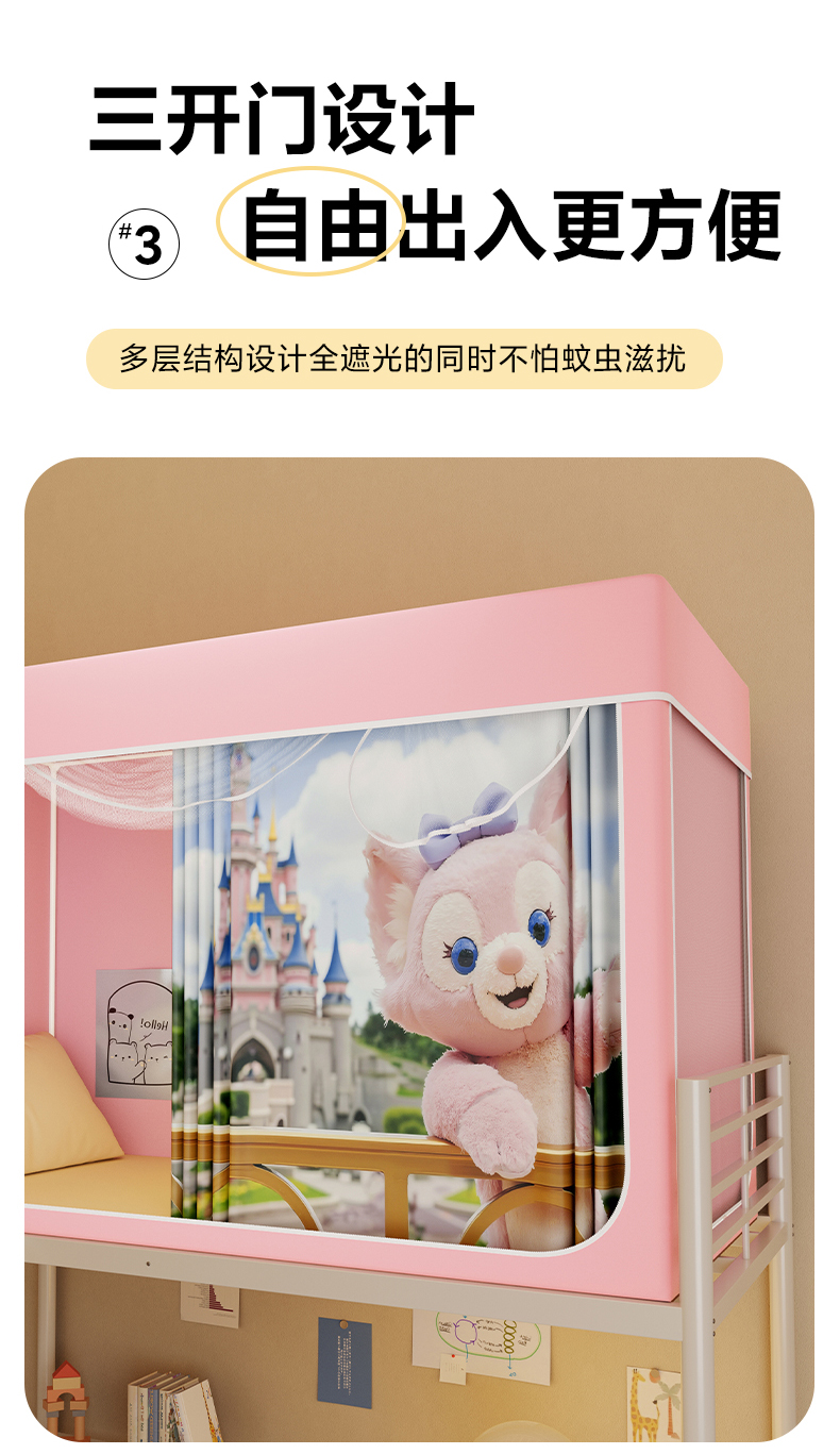 当前位置: 91家纺网 > 商品网购 > 床上用品 > 蚊帐 > 学生蚊帐 > 安金蚊帐2025新款防蚊遮光一体99%强遮光学生宿舍上下铺遮光学生蚊帐-粉色系列 贝儿城堡