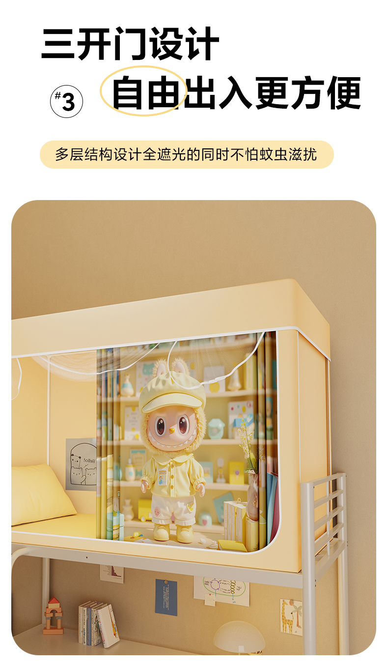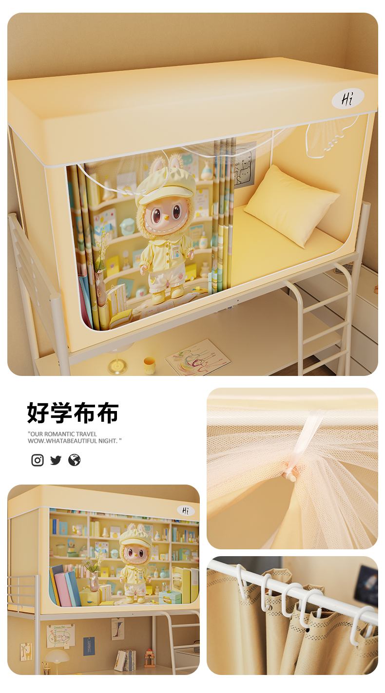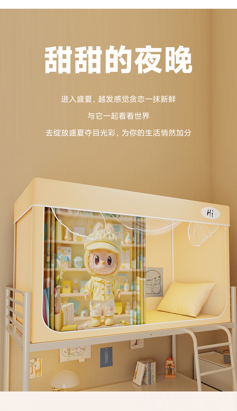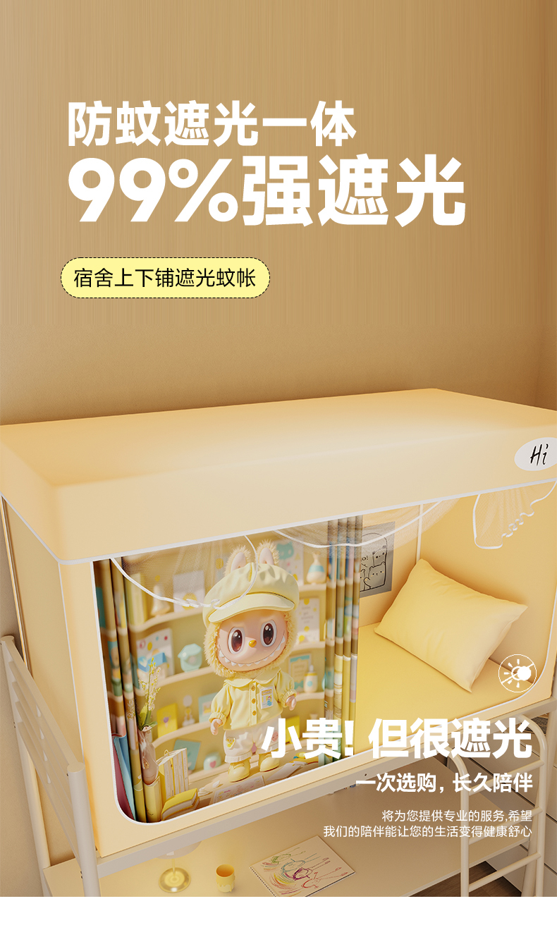 当前位置: 91家纺网 > 商品网购 > 床上用品 > 蚊帐 > 学生蚊帐 > 安金蚊帐2025新款防蚊遮光一体99%强遮光学生宿舍上下铺遮光学生蚊帐-黄色系列 好学布布
