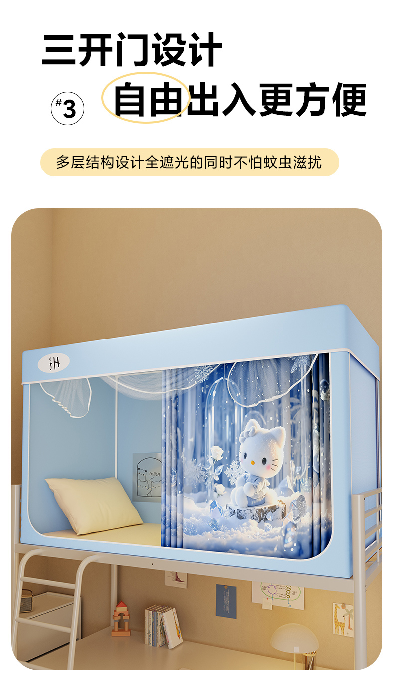 当前位置: 91家纺网 > 商品网购 > 床上用品 > 蚊帐 > 学生蚊帐 > 安金蚊帐2025新款防蚊遮光一体99%强遮光学生宿舍上下铺遮光学生蚊帐-蓝色系列 水晶猫