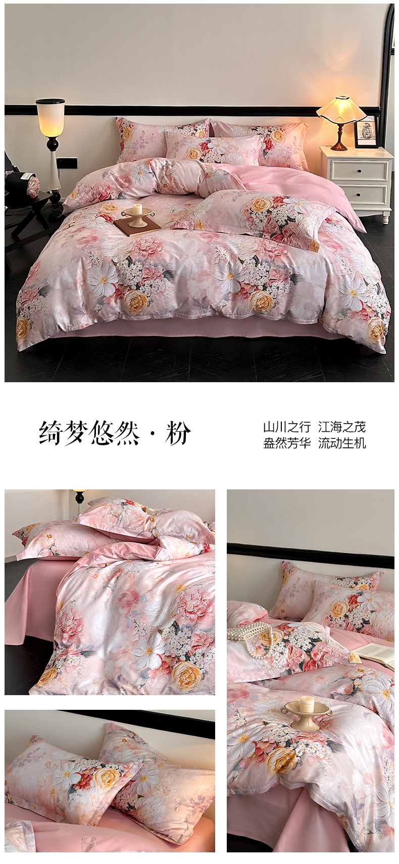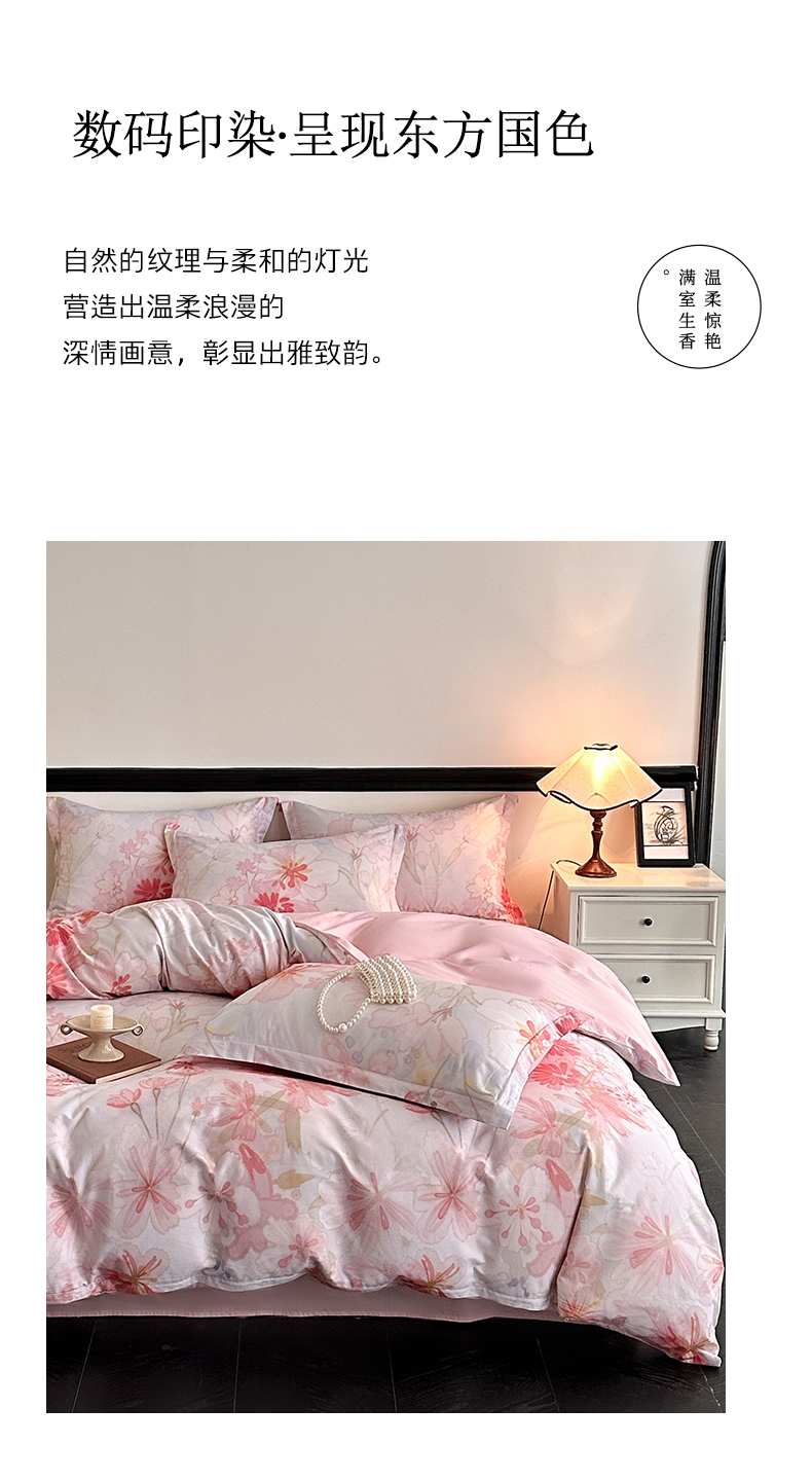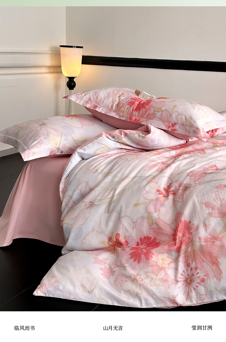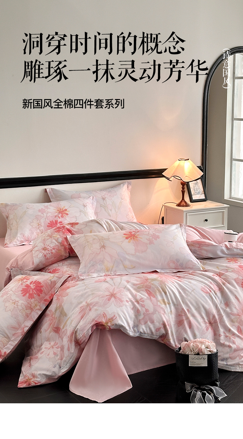 当前位置: 91家纺网 > 商品网购 > 床品套件 > 四件套 > 全棉普通四件套 > 金鑫汇家纺 2025新款13372全棉纯棉高端数码印花四件套 木槿-粉