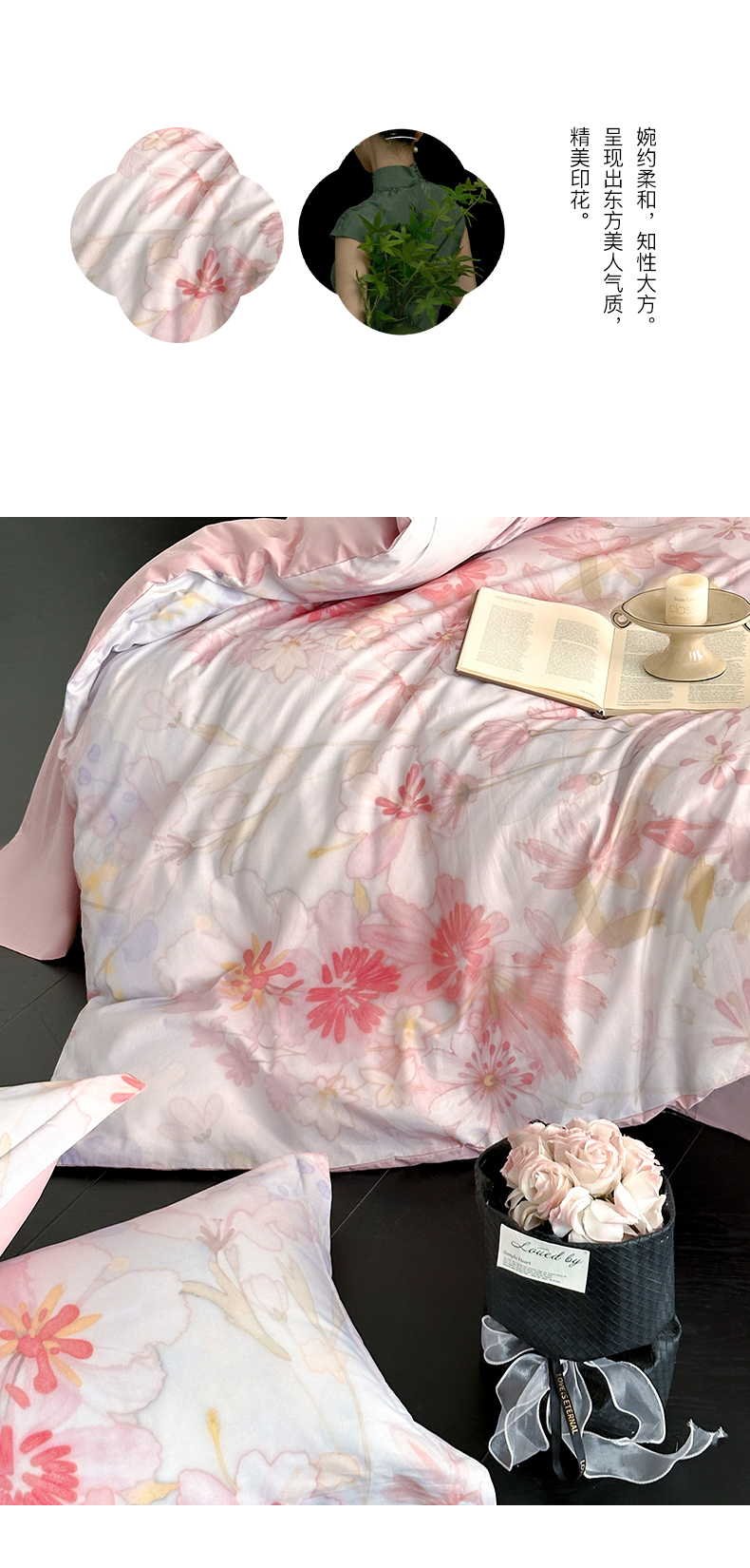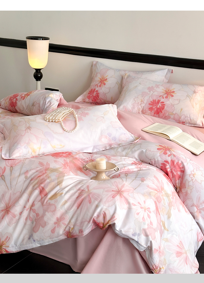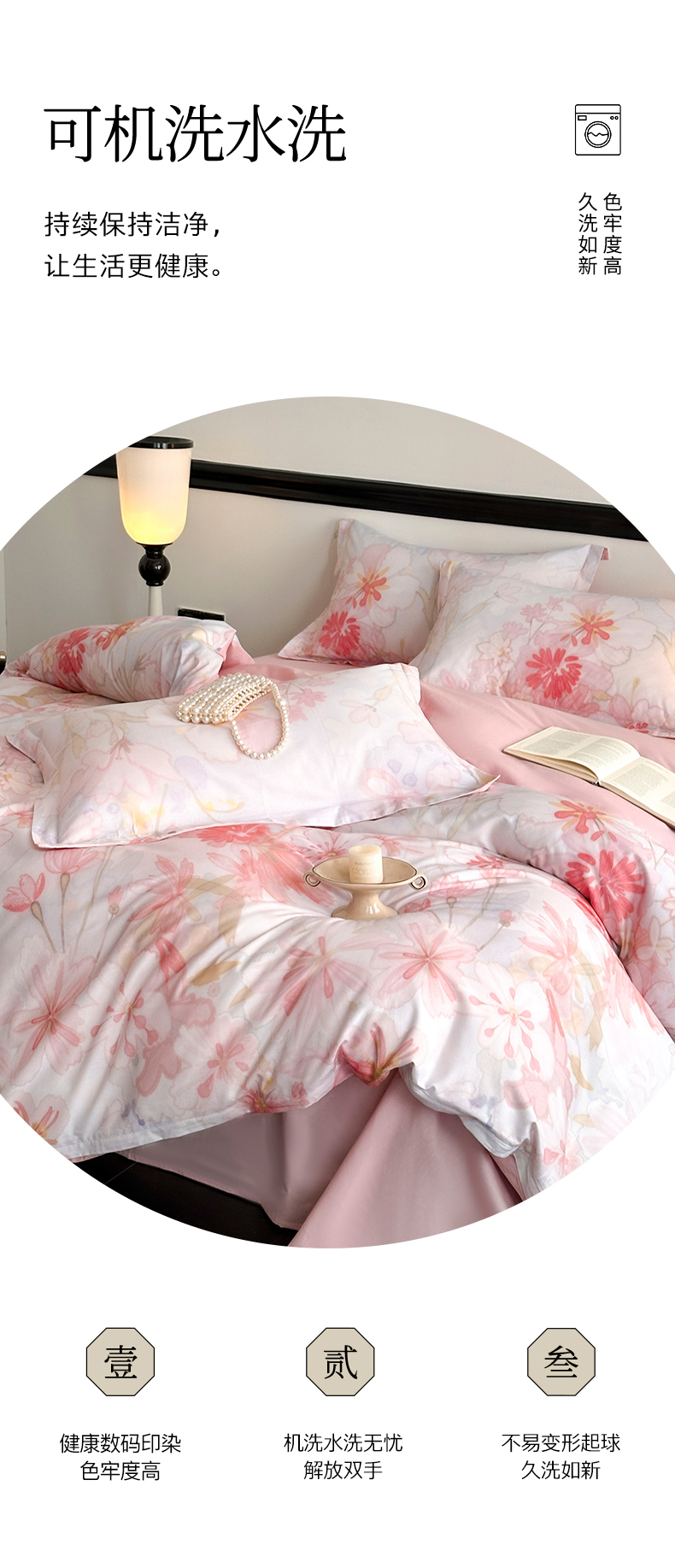 当前位置: 91家纺网 > 商品网购 > 床品套件 > 四件套 > 全棉普通四件套 > 金鑫汇家纺 2025新款13372全棉纯棉高端数码印花四件套 木槿-粉